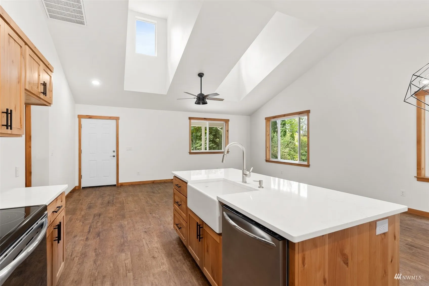 Be the first one to live in this beautiful, newly rebuilt home! Featuring fresh, modern designs all throughout including vinyl plank flooring, quartz countertops, stainless steel appliances, custom made cabinets and doors, vaulted ceilings with skylights, and a spacious open floor plan from the kitchen to the living room ideal for entertaining. A bonus feature of this home is the move-in ready ADU above the garage for a potential income-earning opportunity! Not to mention the great location, this property is situated on 4 (+) acre lot in the charming town of Winlock. You will be close to all local amenities such as grocery stores, schools, and I-5 for easy access to all the big cities. This is your new happy place!