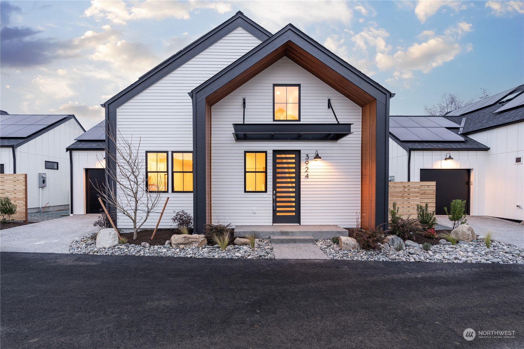 This brand new collection of NW contemporary cottage homes built by Strandberg Construction, located at The Crossings, is the perfect balance of spaces designed both for privacy and community. Poised against the lily pad covered pond with walking trails and gathering spaces throughout, invest in the neighborhood garden and future abundance of the orchard. Styled with modern touches, this cottage has two owner suites with elegant baths and an inviting farmhouse kitchen ready for celebration. Clear cedar detailing, solar panels, single car garage and drought resistant landscaping. Built net-zero these cottages enjoy a healthy respect for the incredible natural surroundings and will offer extremely low utility expenses and a 5k+ tax credit.