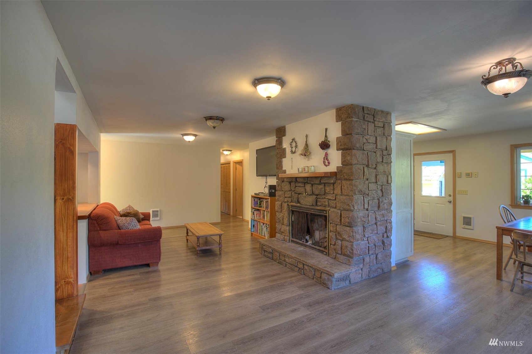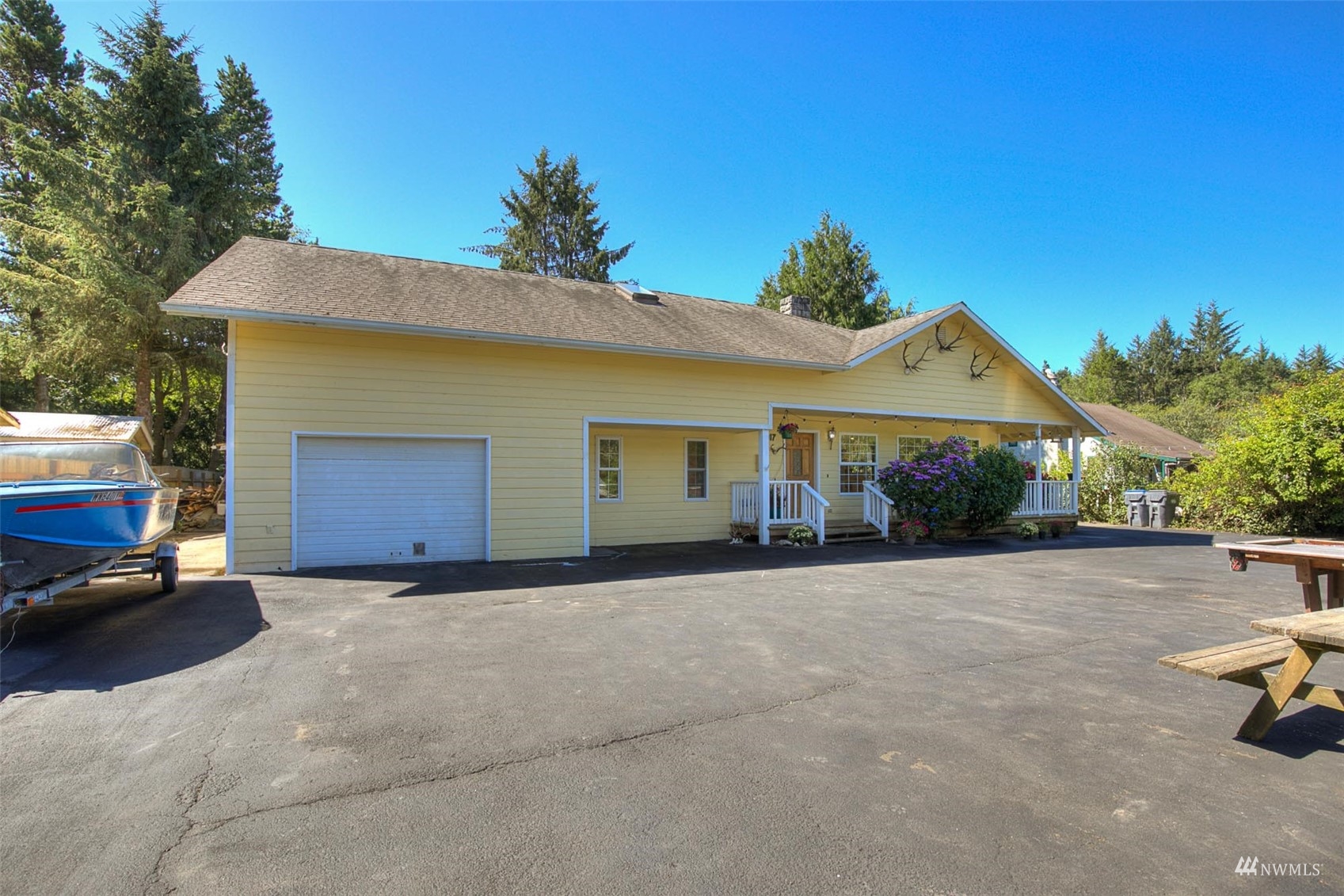 This generous beach home is fully fenced with ~600 sq. ft. of wrap-around deck! Full-time living or vacation rental! Walking distance for seasonal beach access, bird watching, and state park property with trails. Close to some of the best beaches! 3000 sq. ft. of freshly covered blacktop for gated parking or recreational use. Inside is a cozy living room with wood fireplace, en-suite primary, bonus room, & 5 piece bathroom. Down the steps is the freshly renovated den with an office nook, wet bar with mini fridge, and hot tub access. Brand new ext. shower is perfect for rinsing off. Upstairs is a bonus room with skylight, lg storage, and office/bedroom. This property has endless opportunities!