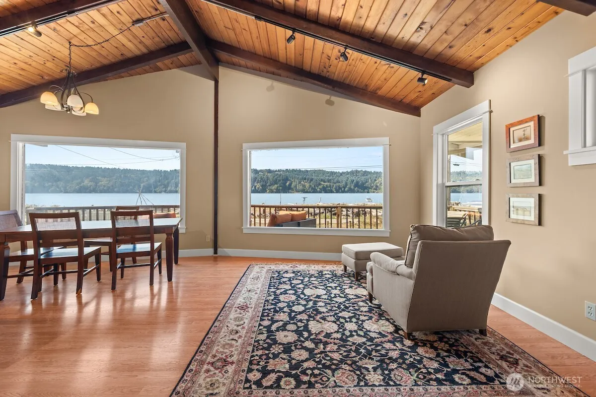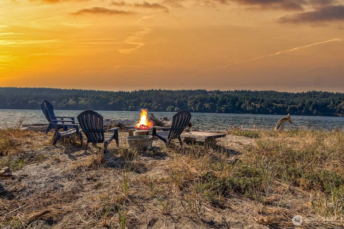 Fantastic opportunity to own a substantial home on 75’ low-bank waterfront with tidelands on a sandy, west-facing beach for less than $1 million! This classic 2,000 sq. ft. house has many modern elements—a new $70,000 septic system, two-car attached garage/ shop, 3 bedrooms, 1.75 baths, and stylish updates throughout. From the deck, look over dune grass to the outer harbor, a campfire circle on the water’s edge, seals, otters, and other sea life, as well as Tacoma city lights. Enjoy the quiet of a small community on a dead-end road; experience watching the sailboats rounding the Manzanita mark, endless beach combing, paddle boarding, kayaking—the best year around entertainment ever!