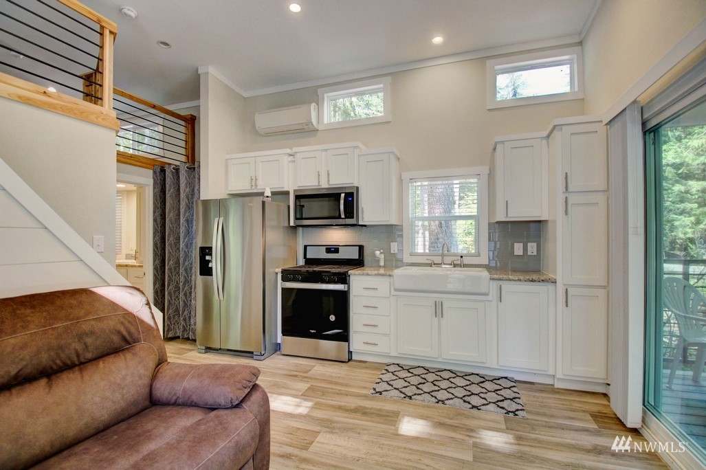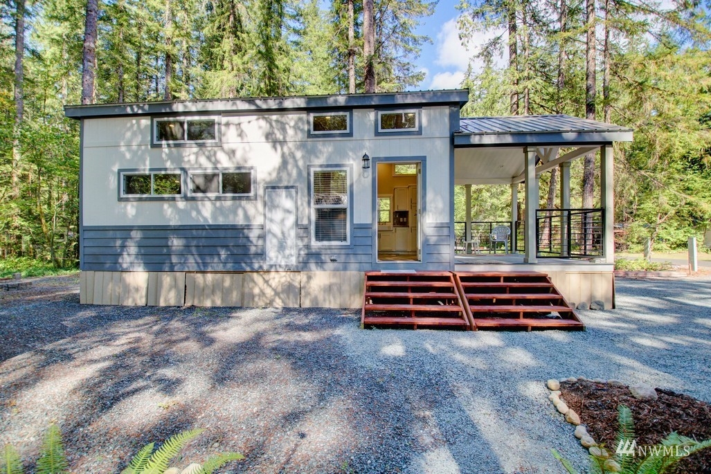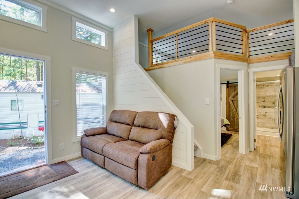 Step inside this beautiful, bright, and modern 2021 park model! It has everything you could hope for including 4 season insulation package, extra R rating floors and roof, trex decking, 30 gallon hot water heater, and more! Inside you’ll find full sized stainless steel appliances, farm house sink, and a loft overlooking the living area. The bathroom boasts a tile shower, lots of light, and has access to the bedroom that includes plenty of storage. Upstairs, the loft is large and full of possibilities. The Glen is zoned recreational for 120 days of use out of the year and has all the amenities you could want, including 2 pools, hot tub, tennis court, library, laundry mat, 2 clubhouses, 24 hr security, gated entry, & play areas.