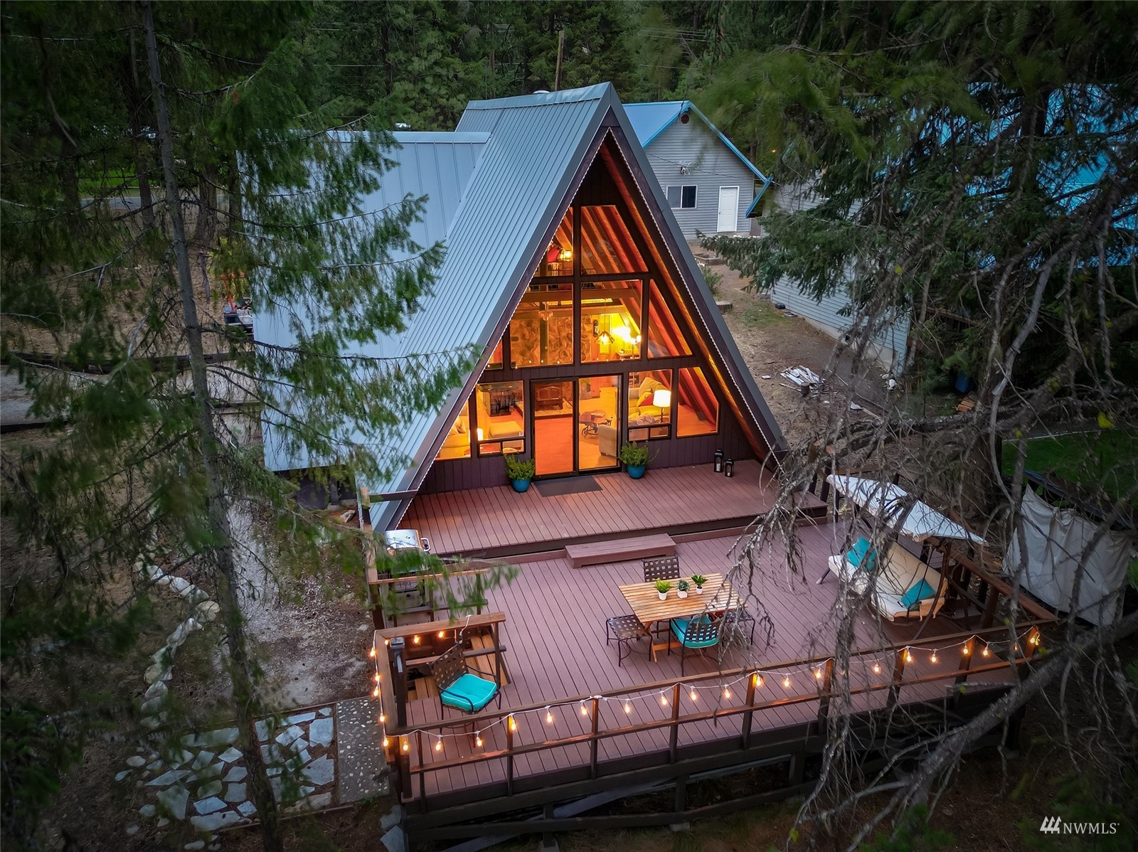 Imagine… Your own beautiful RIVERFRONT RETREAT! This timeless A-frame with a spacious feel & ALL the cabin vibes has been lovingly maintained by the original owners. 1 bedroom on the main floor plus a sizable loft with adorable sleeping nook. Gaze at the river while you keep cozy around the wood stove or BBQ for guests on your large deck overlooking the water. Located in Ponderosa Estates in the quaint community of Plain. Discover nearby recreation opportunities including skiing, hiking, biking & snowmobiling. Float right to or from your property or enjoy the community pool, clubhouse & playground. Just 42 minutes from Stevens Pass & 25 minutes from Leavenworth. This is the PERFECT all-season cabin for making memories.