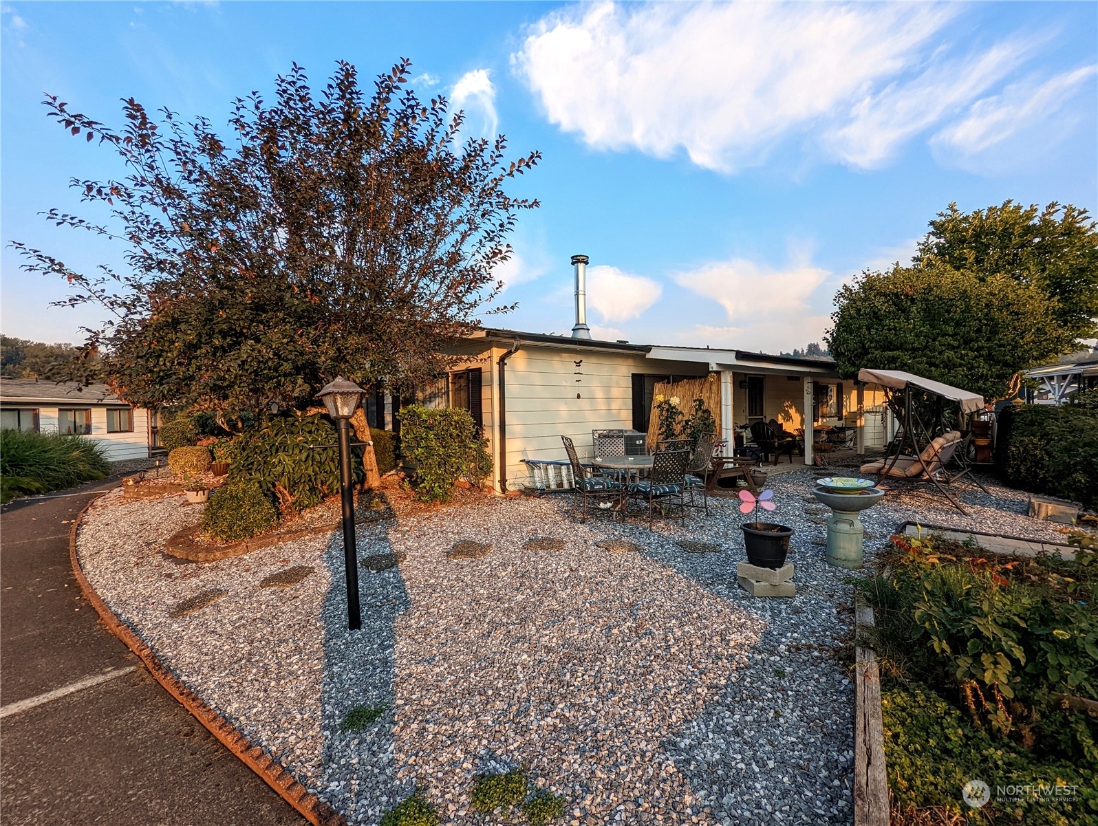Large mobile home in a 55+ gated community with all the amenities you could wish for! Easy, no stair entrance, with beautiful rock garden to allow for low maintenance landscaping. Enjoy a newly remodeled home with ceiling fans, skylights, two fireplaces, brand new heat pump, large kitchen and huge primary bedroom! Park also has clubhouses, exercise rooms, spa and hot tubs, and swimming pool. This is one you won’t want to miss!