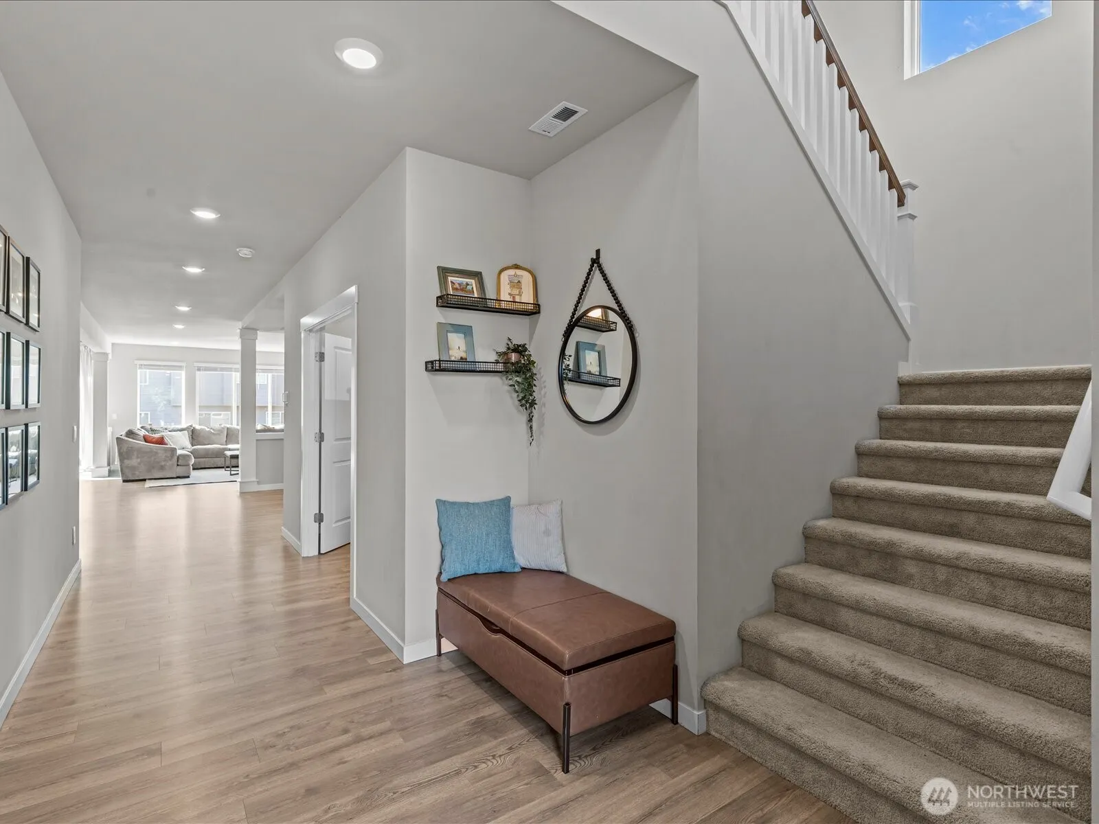 Built in 2023 & still like-new, this 3,713-sf DR Horton home blends smart home technology with Gig Harbor charm. A fully integrated Qolsys alarm with 33 Deako smart switches, exterior cameras, smart locks, garage & thermostat delivers effortless security & convenience, all included & ready to use. Sun-filled living & dining spaces flow to a chef’s kitchen & main-floor bedroom / den, while upstairs offers a spa-like primary retreat, three more bedrooms & a bonus room w/ French doors & balcony views of the greenbelt. The 9,754-sf corner lot features a fenced backyard, extra side yard & an extra-deep driveway for four cars. Just steps to Cushman Trail, parks & top schools, & just minutes to Costco, Target & the historic Gig Harbor waterfront.