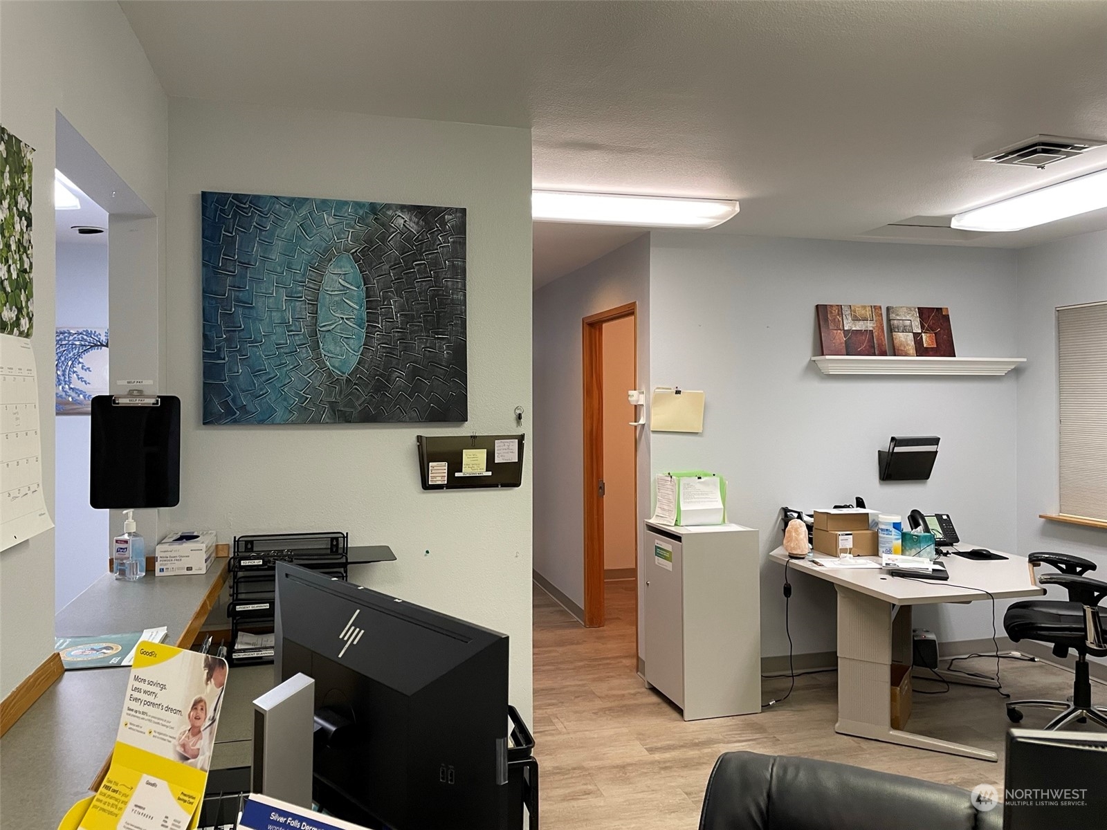 Large, nicely finished medical office clinic building on the west side of town. This building has 12 rooms that are currently being utilized as exam rooms, a lab, laser and light box rooms, storage rooms, private offices, and a break room. An open reception desk area with office space and a large waiting room with lots of light brought in through tall windows and skylights. Lastly, there are two 1/2 bathrooms plus one 3/4 bathroom.