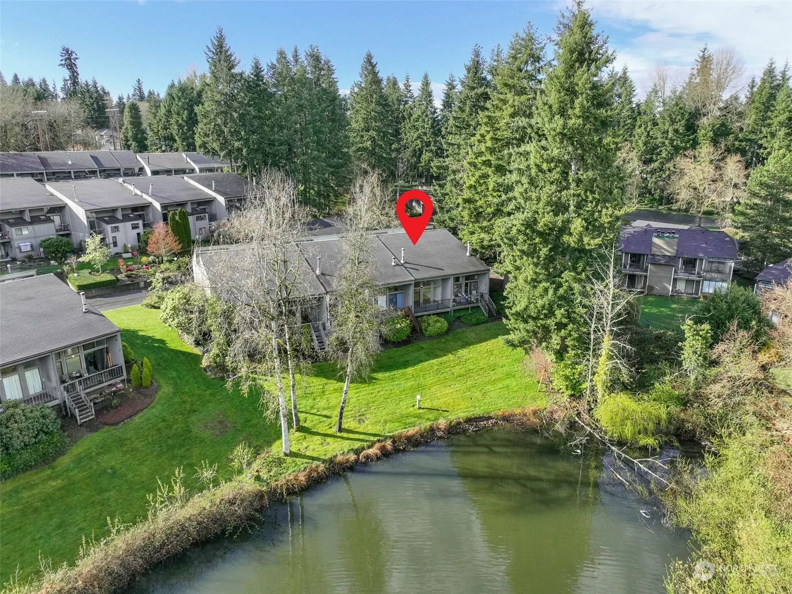 (FOR RENT) 60-01 Village, LAKEFRONT -NEWLY RENOVATED town-home which includes entrance with coat closet, 1/2 bath. Kitchen with breakfast bar, dining area, living room with vaulted ceiling, sliders to deck and view of Swan Lake. Upper level has bedroom/office/den with a double closet, stack washer/dryer, full bath, second bedroom with double closet. Engineered hardwoods throughout. This 60-01 gated community is located surrounding Swan Lake and offers multiple pools, a clubhouse, bar, health spa, tennis courts, volleyball, and so much more. Rent includes access to amenities. Covered parking and free additional parking. Move-in fee $150. $25 extra gate key. Renters Insurance Required.