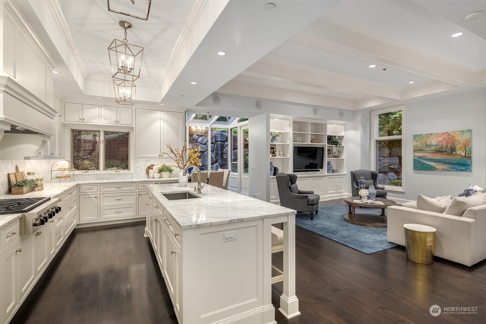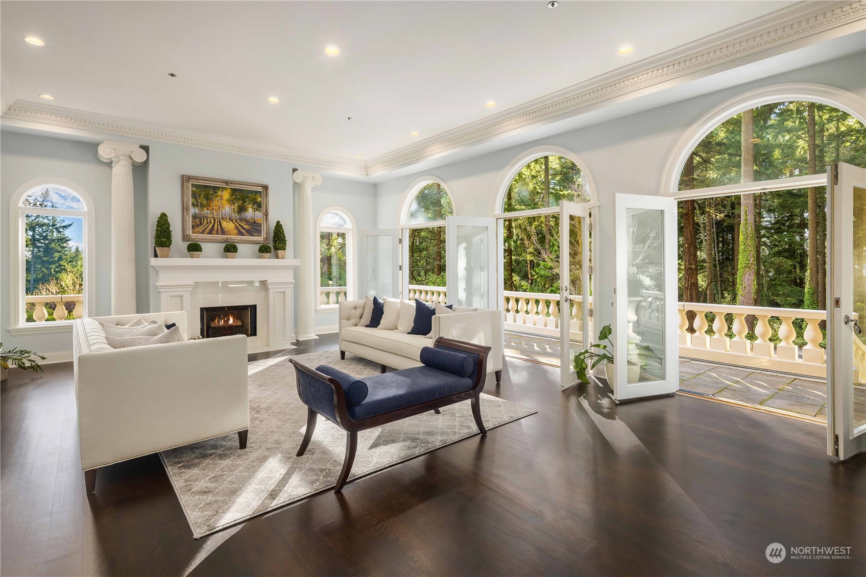 Timeless luxury, perfectly situated on a 2.09-acre lot in the prized Highlands community. Welcome home to four levels of living space, gorgeously updated in a 2019 remodel by Schultz Miller. The ultimate home for living & entertaining, with a gourmet chef’s kitchen and superb indoor-outdoor flow. Main floor primary suite boasts access to the view terrace & the bedroom level upstairs features four gracious ensuites. Expansive lower level with attached 7-car garage for car collectors or hobbyists. The grounds encapsulate the beauty of the PNW with woodland trails— complete with a rustic cabin, English garden & unparalleled privacy.