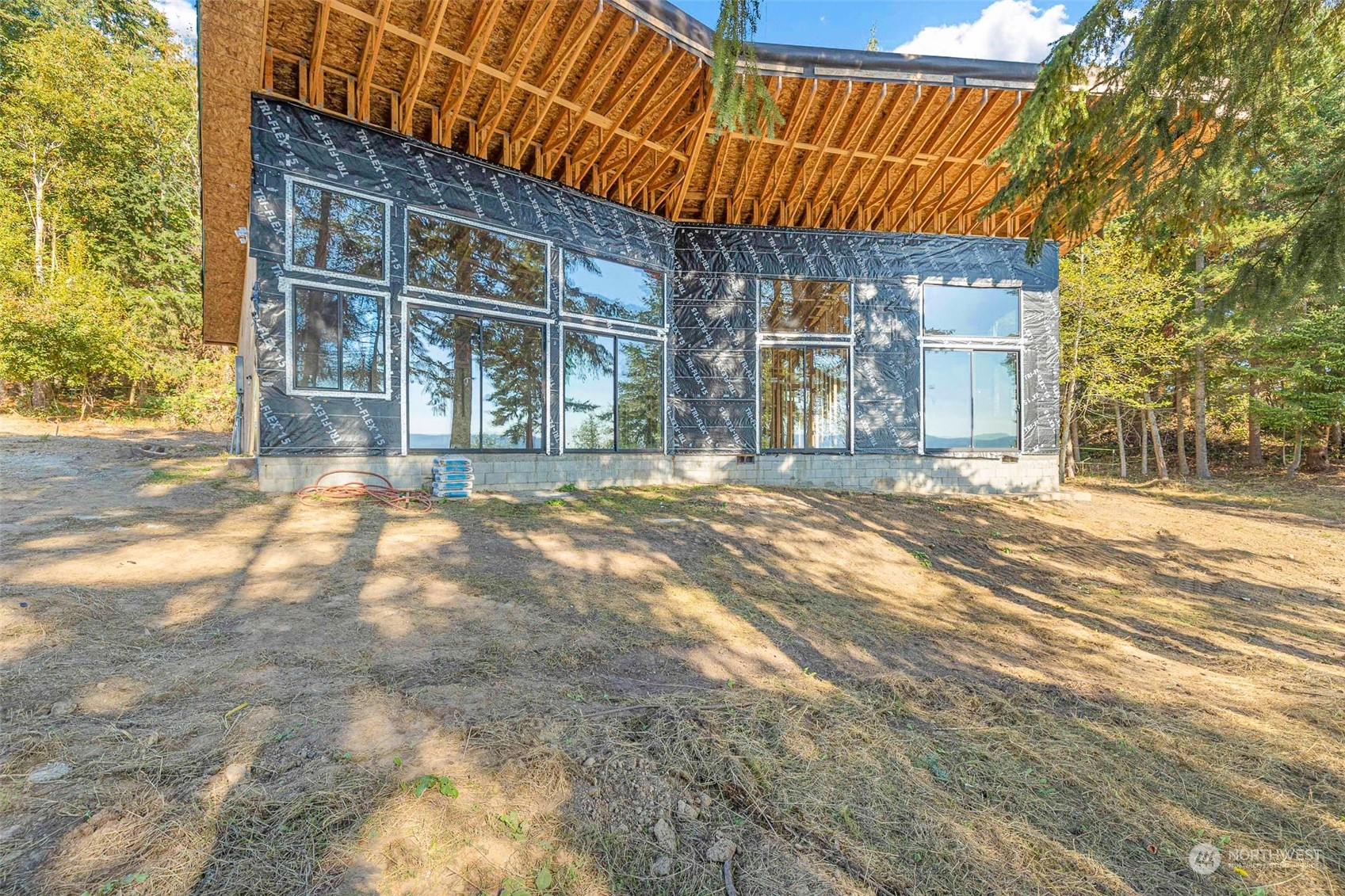 Stunning Hood Canal views await you! An exceptional 6 acre property w/300 ft of high-bank waterfront. No HOA. A stylish main home was started with plans to add an attached garage w/800sf primary suite above. Final sf would be ~2300sf w/3bed/3bath. See home design in photos! Bask in sweeping Canal and Bridge views from a flood of windows and sliders on this home designed with a modern European/PNW sensibility. Water, power and 5-bed septic on site. Addt’l outbuildings & RV hook up. Possible 2nd build site. Airbnb? Vacation or full time living. Homes in the area on high bank have sold in the millions. Enjoy finishing this home and gain equity. Sold as-is. There’s so much to enjoy on the Hood Canal!