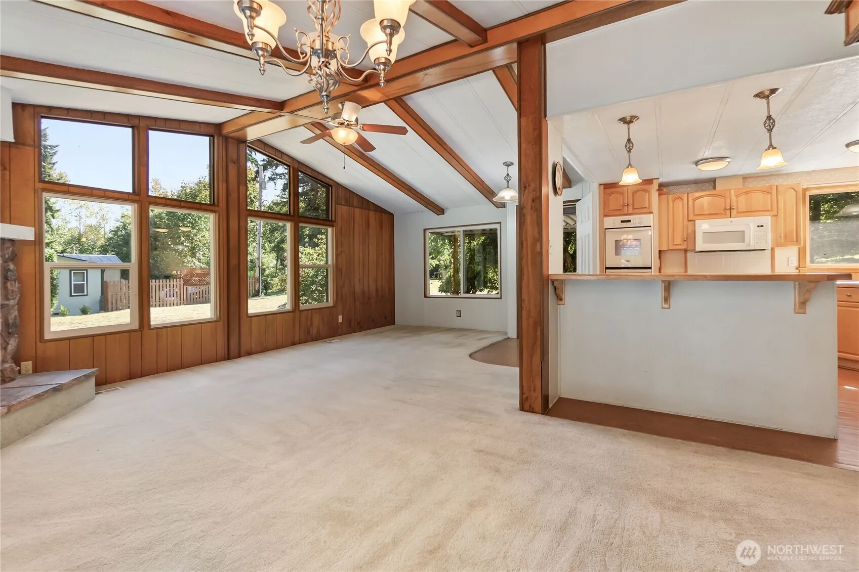 Nestled in the country but minutes to all amenities & across the street from Lake Ki. 2bd 2bth mnf home on .57 acres. Covered front porch & extra large back deck, great for entertaining. Property offers freshly graveled driveway with room for 10 cars & RV/boat spaces. Many opportunities make this home ideal for resort style living. Garden shed & workshop which has power & water, Large flat usable .57 acre yard w/mature landscape and plenty of room to build a shop. Inside features bright open floor plan, Vaulted ceilings & cathedral windows offer plenty of natural light. Updated Kitchen & brand new dishwasher. Cozy wood burning fireplace in open living area for fall/winter season. Community of lakes with year round entertainment all around.