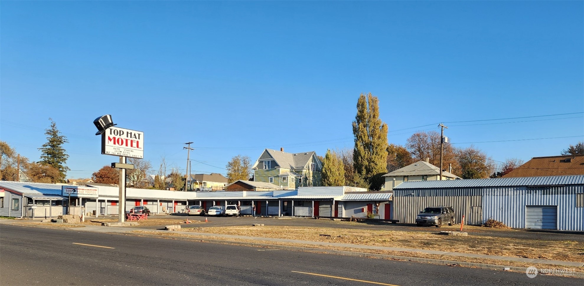 Quint small town motel with loyal following. 11 units of varying size. 3 rooms w 1 double bed, 2 rooms w 1 queen bed, 5 rooms w 2 double beds, 1 room with 1 king bed. All but 1 with full baths, 1 with stand-up shower only. Microwave and fridge in each room. 2 large storage units that could be rented out and room for more or divide up the ones that are there currently for extra income. Potential for RV hookups as well. Managers apartment on the premise and separate office. Hookups for tenant washer and dryer have been installed. Manager in place and could stay.