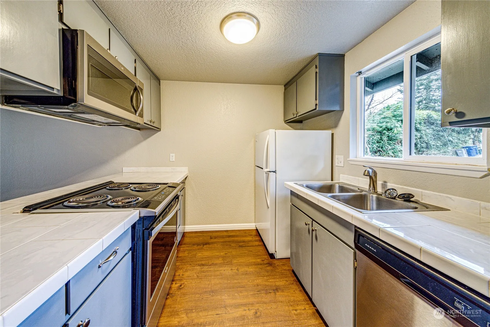 Beautiful two bedroom, one bath unit in a well-maintained duplex in Lake Stevens featuring a peek-a-boo view of the lake from the deck. Brand new LVP floors! Pet are allowed on a case by case basis, some sort of pet reference would be required. A detached garage provides ample storage or parking (plus one driveway spot as well!). A large backyard with trees wrapping the back side provides wonderful privacy. Unit has fresh paint, new bathroom features, dishwasher, microwave, washer/dryer, and spacious family room! Tenant to pay all utilities.