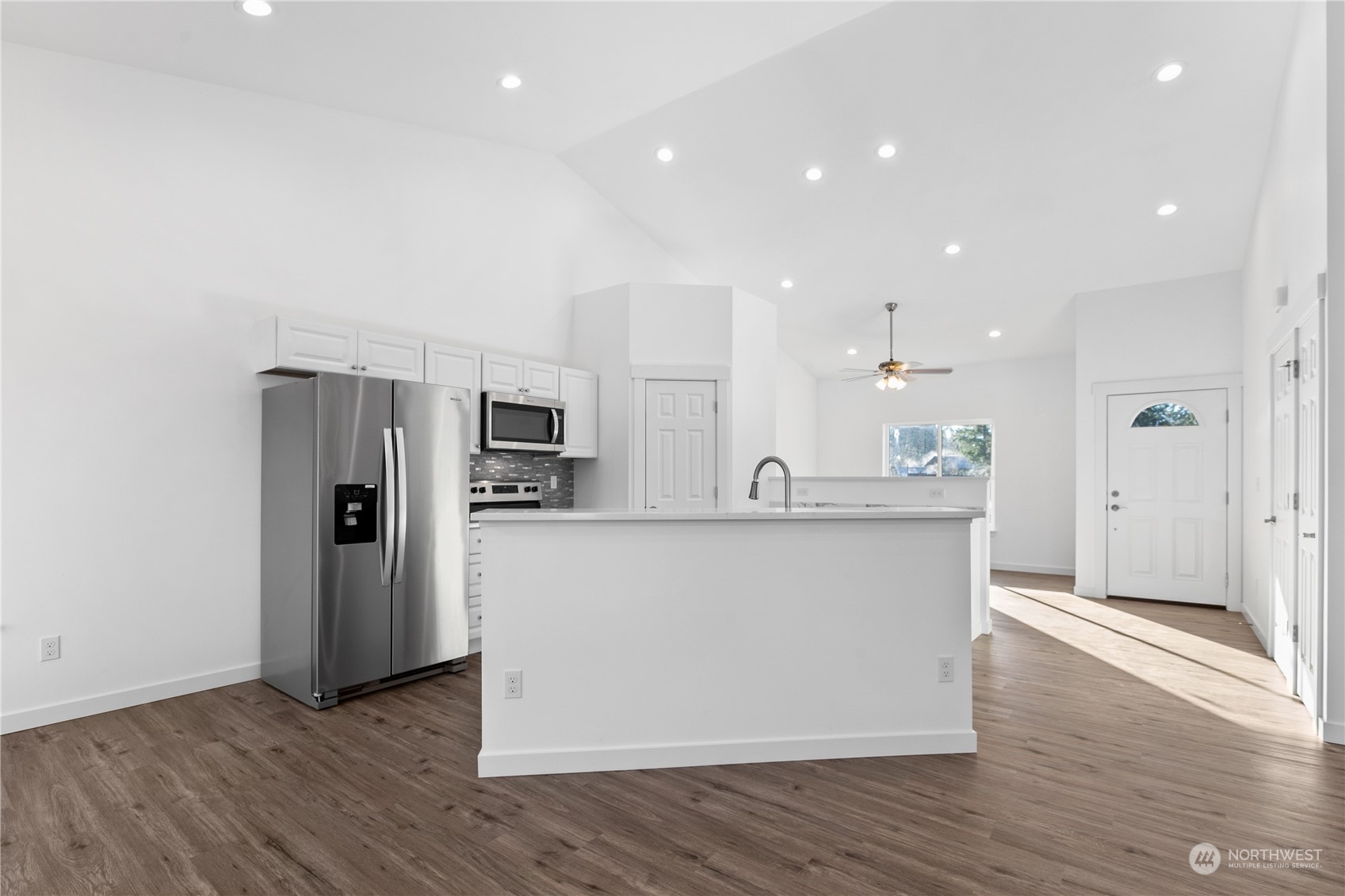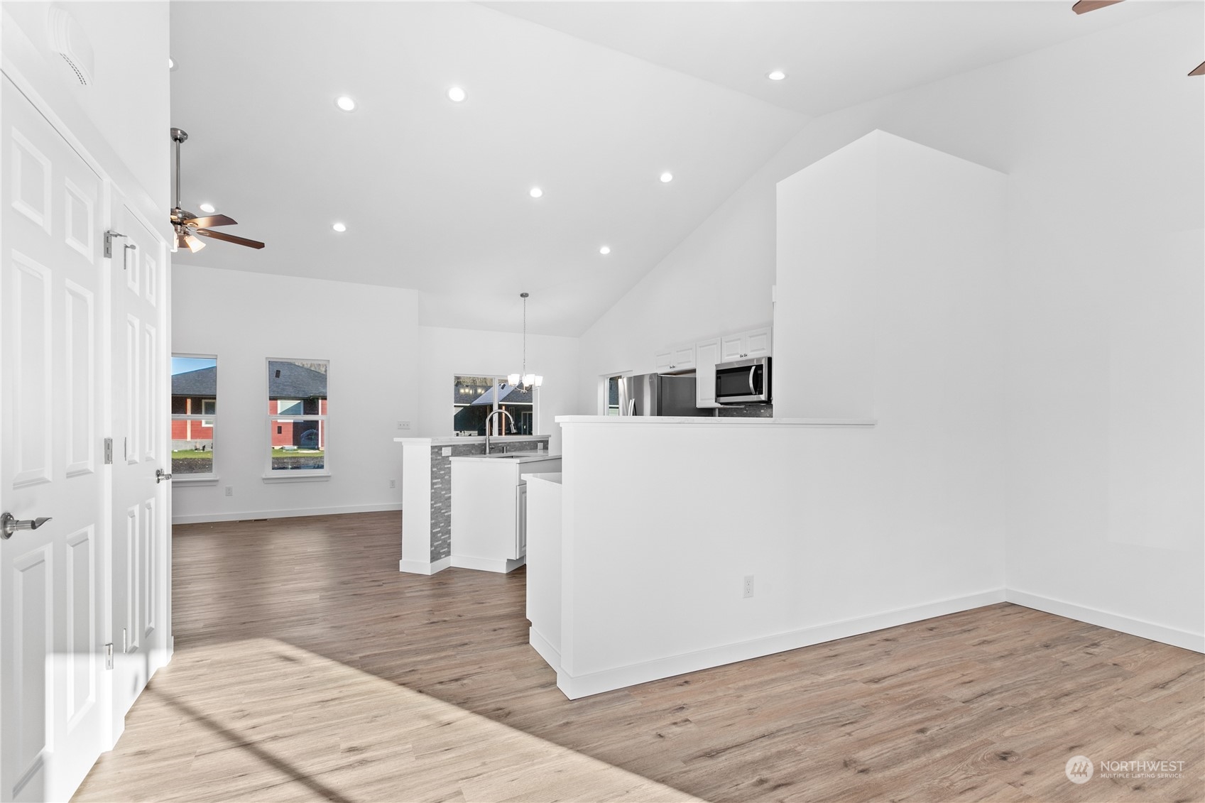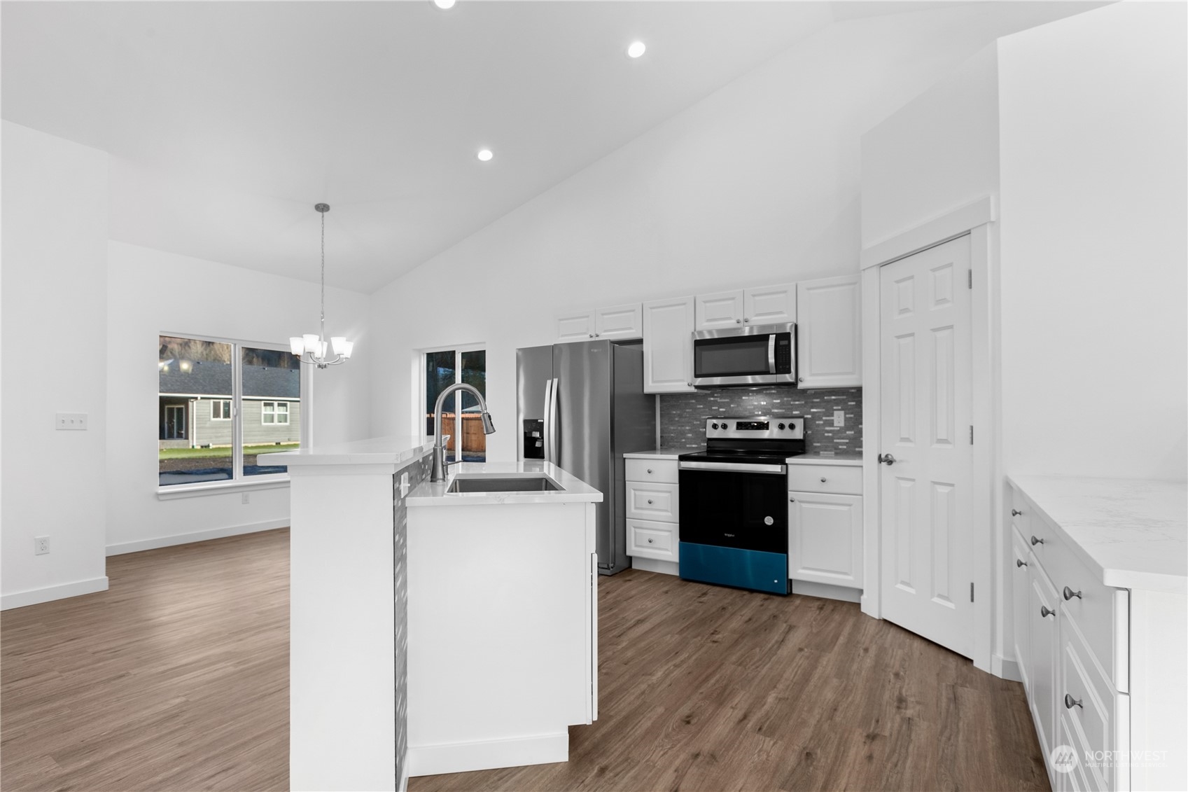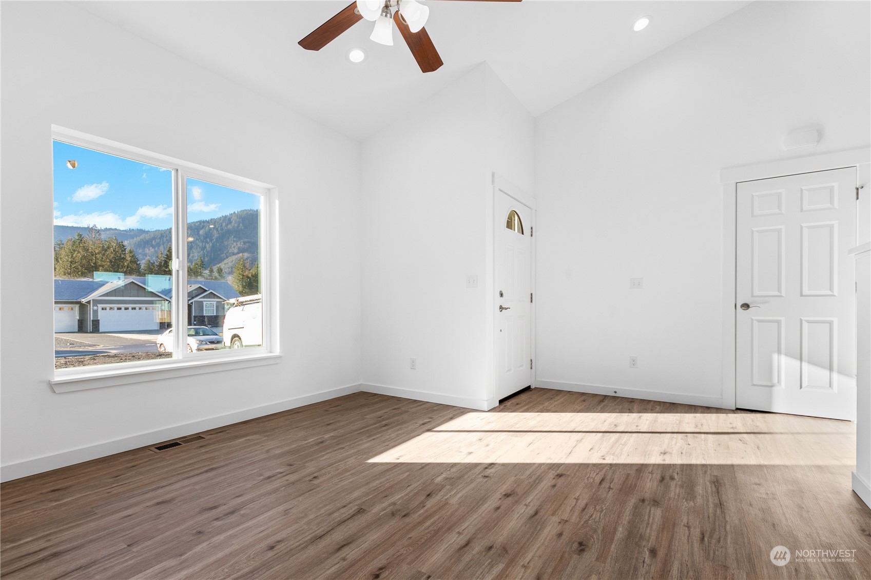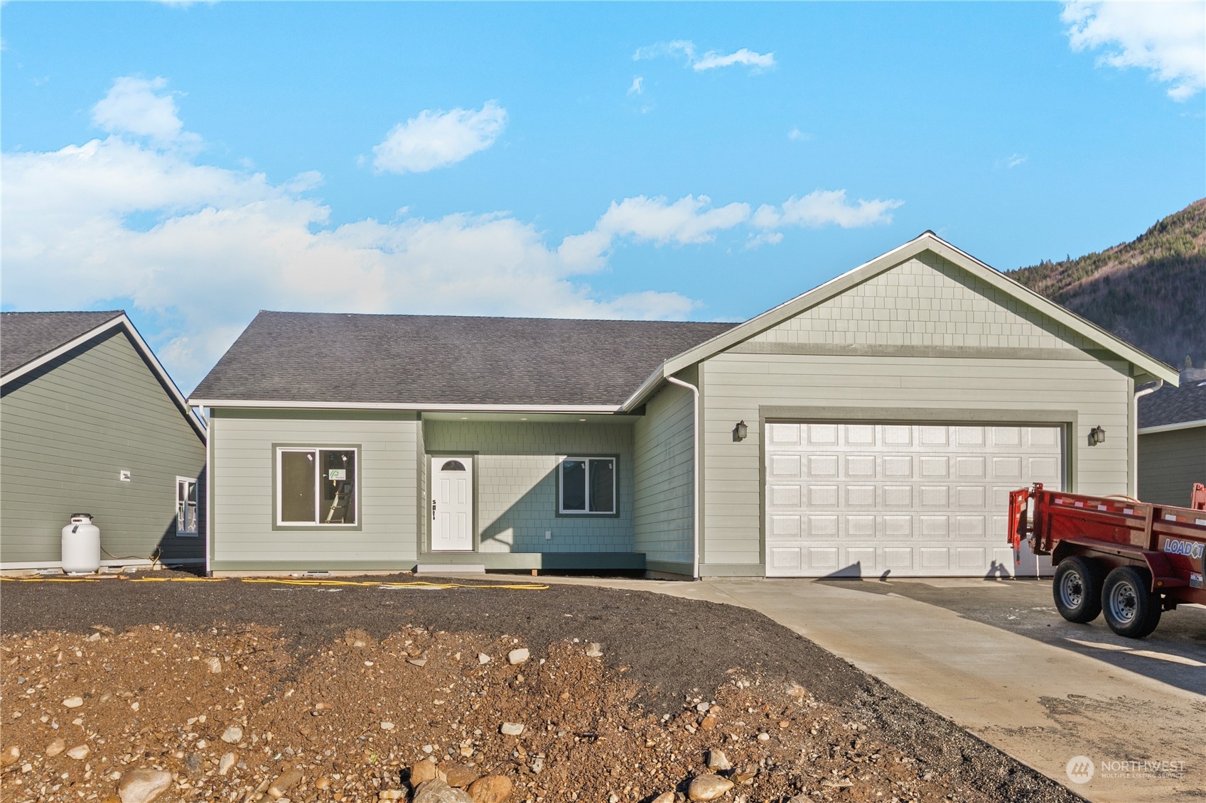 New Construction 3 bed 2 bath in gated community. This beautiful home has cathedral ceilings in the living room/family room/kitchen AND the primary bedroom! The oversized kitchen has loads of cabinets, stainless appliances and quartz countertops that almost never ends. Gas fireplace in the living room adds both ambience and a second heat source. Luxury vinyl plank flooring in all common areas and carpet in the bedrooms. Primary has an onsite bathroom and 2 walk in closets! Primary bed also has a door out back deck that would be perfect if you wanted to add a hot tub. The back deck has a gas line for your B-B-Q. Come & tour this fabulous home w/ stunning mountain views in a great new community! Possible Seller Financing for qualified buyer.