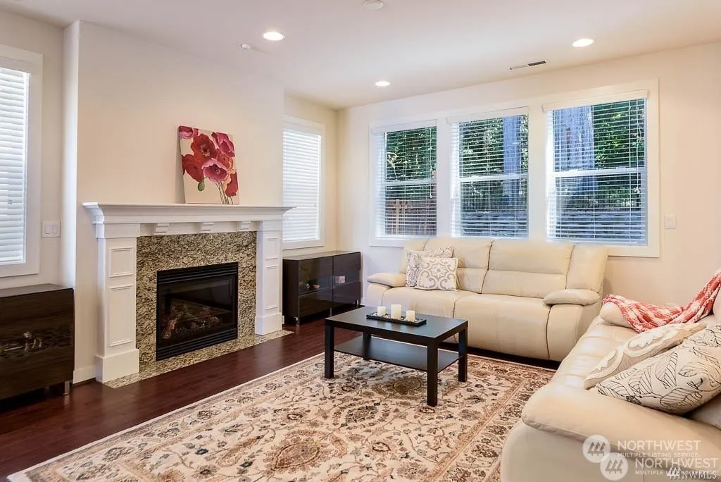 Perfectly charming 3 bed/ 2.5 bath home in Issaquah Highlands. This 2013 home is Meticulously maintained & upgraded. Open floor-plan great for entertaining. Kitchen features with pull out cabinets and stylish granite, GE cafe stainless appliances, under cab lighting, soft-close doors. Hardwood throughout main. 5-piece master bath w/walk-in closet & Central A/C. Fully fenced backyard adjoins protected green belt. Huge walk-score, close to all amenities, I90, P&R, Corp shuttles, Parks, trials, Restaurants, movie Theater, Stores. Award wining Issaquah school district.