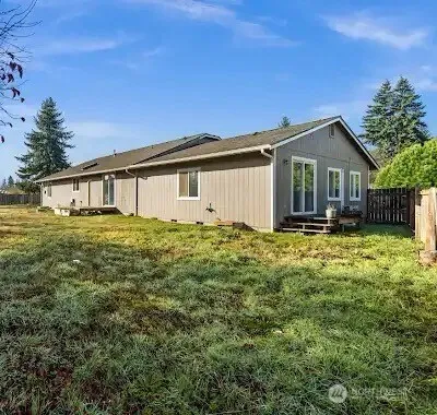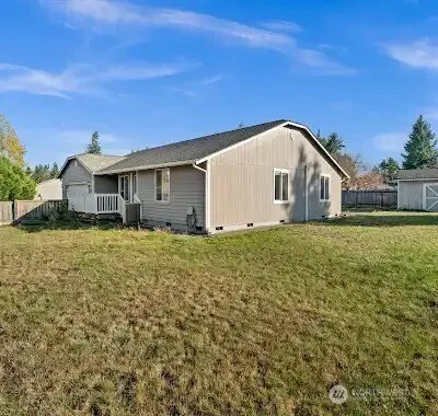 NOW VACANT and UPDATED In the heart of Downtown Yelm close to JBLM. This sought after single story Rambler is created with multigenerational living in mind. A huge second living area would be a great investment for a rare cashflowing property. Fenced with newer septic and a covered porch makes for a great entrance. The RV parking is great to store your toys safely. Huge kitchen for entertaining mini ac split for air-conditioning and central air. Great community area and quiet neighbor close to all the amenities.