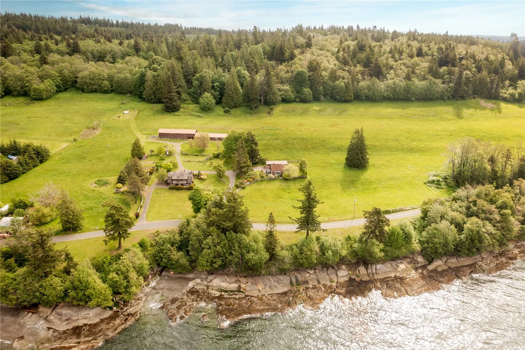 This extraordinary 14+ acre waterfront property (700′) fits the bill of wild, open spaces, views, & what agricultural or entrepreneurial dreams are made of. An array of possibilities here; a canvas for homesteading, art, agriculture. The first time this gorgeous property has been on the market, as it has been in the family for generations. The home; stout wood beams initially used in the cannery juxtaposed among brick & wood create a deeply comforting atmosphere.The kitchen is stellar, a fine craftsman’s handiwork. Plenty of space with three-bedrooms + den/office/music room. Plus, the 7,000+ sf barn has endless potential; boat building, art lofts, agricultural use. A rare & prime piece of property; orchards, gardens & never-ending views!