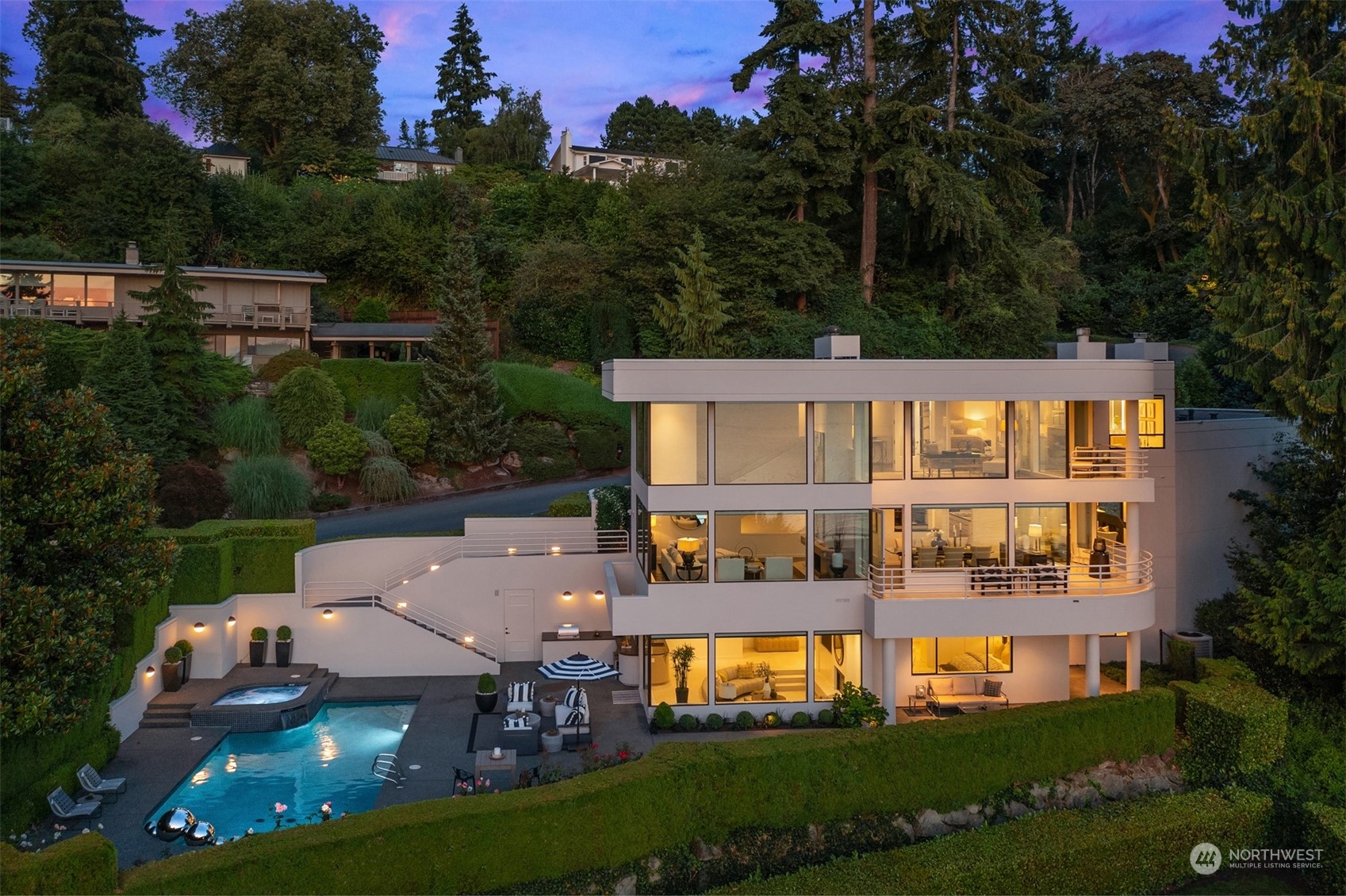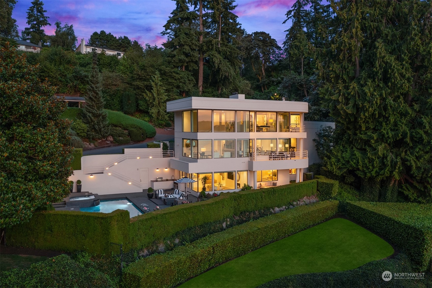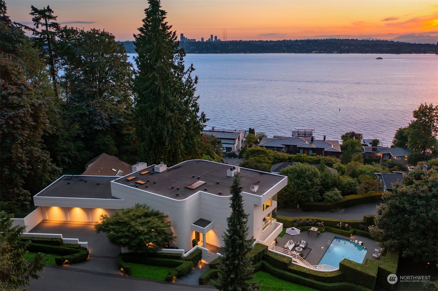 Sculpture House… Reimagining – this impeccably stylish and undeniably chic home just completed a major two year renovation. Prominently positioned on one of Medina’s most desirable streets to take full advantage of incomparable western views of Lake Washington, the Olympic Mountains & the Seattle city skyline. Originally designed by esteemed Northwest architect Vassos Demetriou, this trophy estate was created to entice the senses. Manicured boxwood gardens gracefully surround the sunlit pool & spa. A dramatic sculptural courtyard entry is sure to leave an impression for all who visit. Effortless entertaining spaces accommodate both indoor & outdoor gatherings with light filled rooms, terraces & courtyard patios. Incomparable.