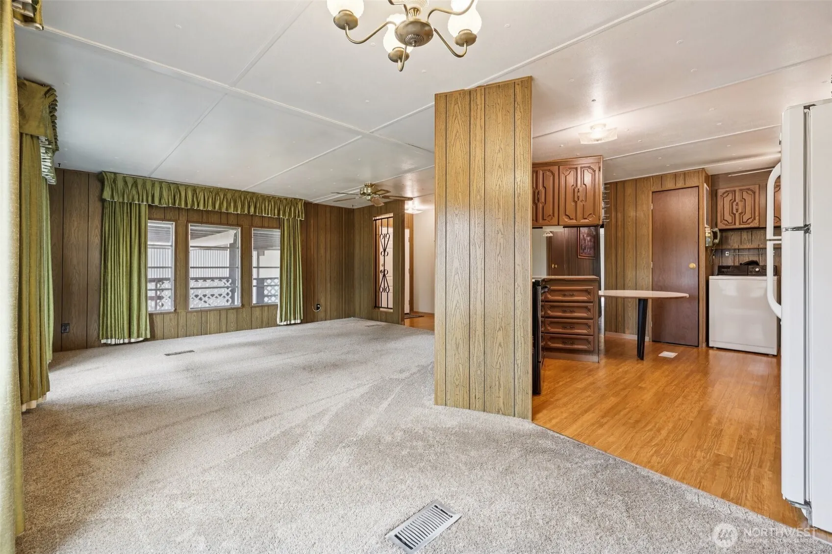 Great opportunity to own this affordable home in the all-ages Coach Country Corral community! This spacious 3 bed, 2 bath home offers a functional layout w/a blend of vintage charm and thoughtful updates over the years. Recent improvements include freshly painted beds & baths, new carpet in primary suite, & a newly painted exterior. Enjoy a newly built back porch with peek-a-boo views of Mount Rainier, giving the home a peaceful countryside feel while still being close to shops, restaurants, & JBLM. Additional highlights include covered carport, spacious insulated storage shed, central heating & A/C, w/generous front & back yards. Plenty of room to entertain & enjoy the outdoors. Water and septic included with space rent.