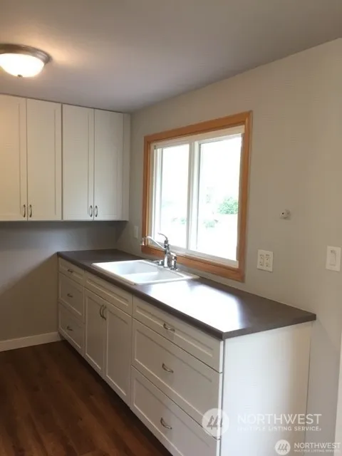 Come see this light-filled, 3 bed/1 bath rambler for RENT. Large tile entry/mud room, bright open living room, brand new kitchen looks onto a deck & large, low maintenance backyard on greenbelt. Attached single car garage w/tons of storage & 2 of street + 1 RV/Boat parking spaces. Gas furnace. Sewer & storm water drainage utilities and lawn care included in rent. Just blocks from elementary school, close to Highline College, transit, & shopping. Dogs & cats considered w/additional pet rent/renters insurance pet rider. Do come see!