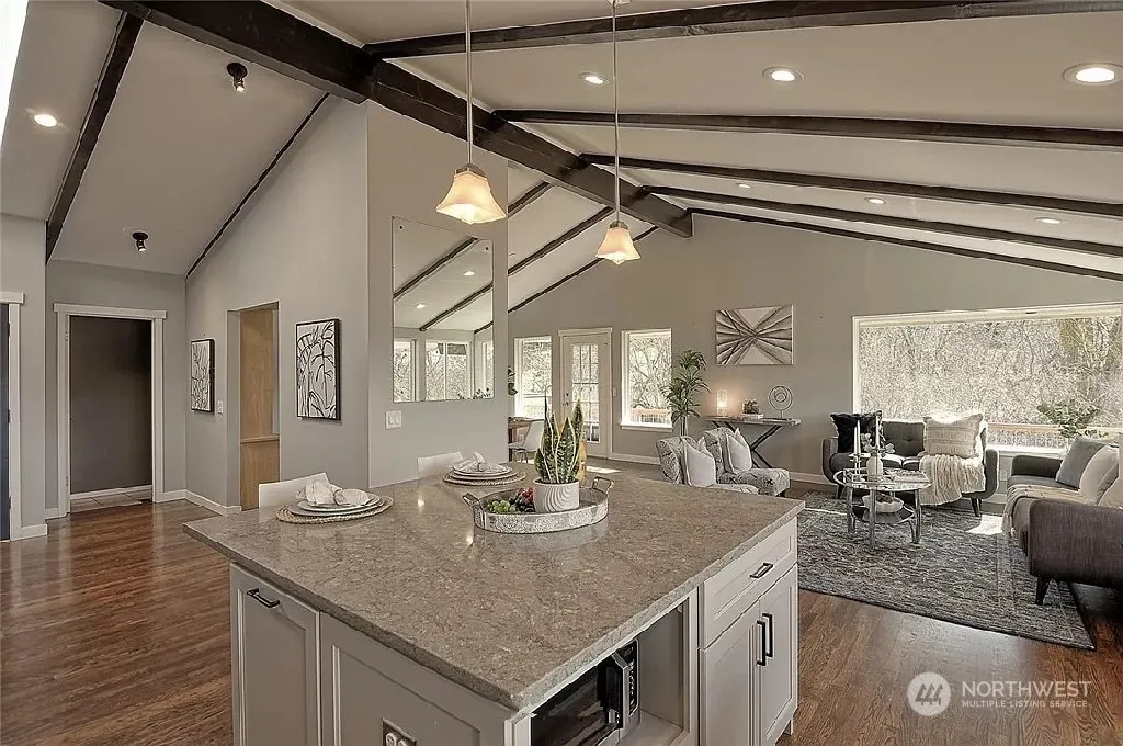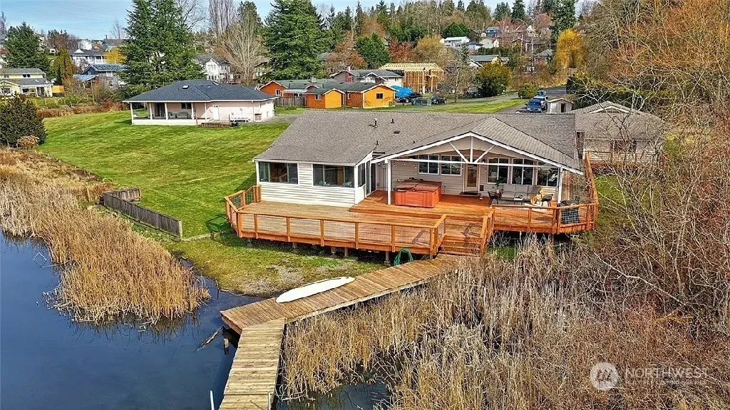 Lakefront living on Blackmans Lake 3 bedroom 3 bathroom, no stairs, stunning view from your private deck, relaxing hot tub, and your own dock on a private lake. Large Kitchen space with an open concept that joins the living area. Quartz Counter tops, shaker cabinets and stainless-steel appliances, A/C to keep cool in the hot NW Summers and two bonus spaces, one attached to the garage, and one off the back of the home. Landscaping included. Plenty of parking for boat or RV. Pets under 35 LB’s welcome with additional security. Subject to restrictions.