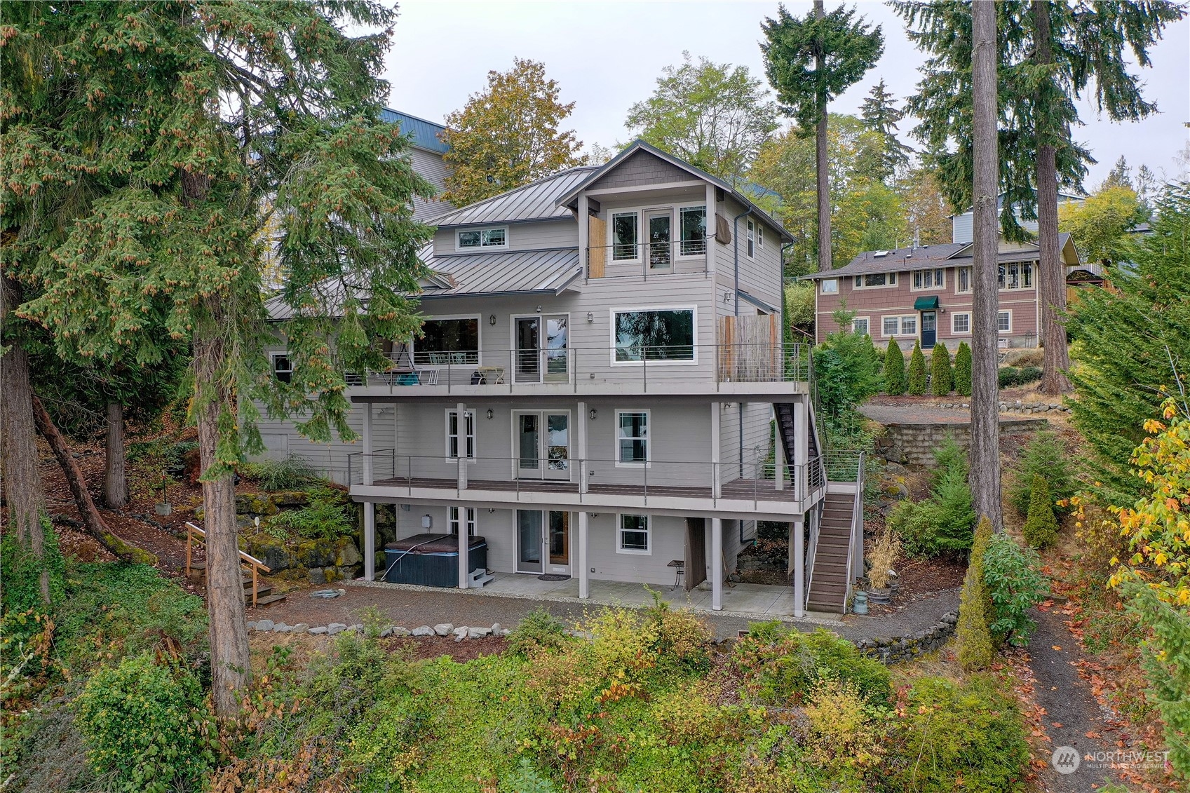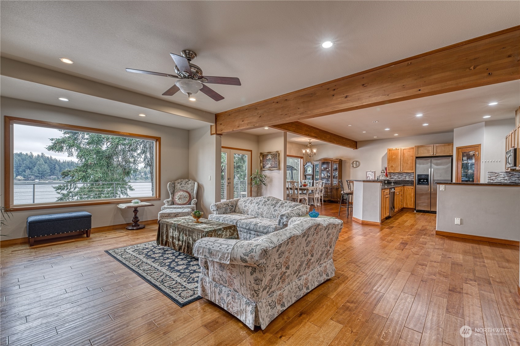 Experience luxury living at its finest in this 4166 sq ft waterfront home on private .35 acres that has been tastefully updated. Paradise like access to your very own 125 feet of sandy beach, dock & deep water moorage that will have you soaking up long summer days & cool winter evenings breathing in all that PNW has to offer. Open concept, with spacious 5 bedrooms, 3.5 bath, remodeled kitchen, SS appliances, granite counter tops & walk-in pantry. Primary bedroom w/view deck & stunning bath w/marble walk-in shower. Engineered hardwoods, gas fireplace, built in vacuum, metal roof, hardi-plank siding, 2 lg trex decks and more. BONUS: Multi generational living or rental income for downstairs! Truly a one of a kind, close to ferries & highway.
