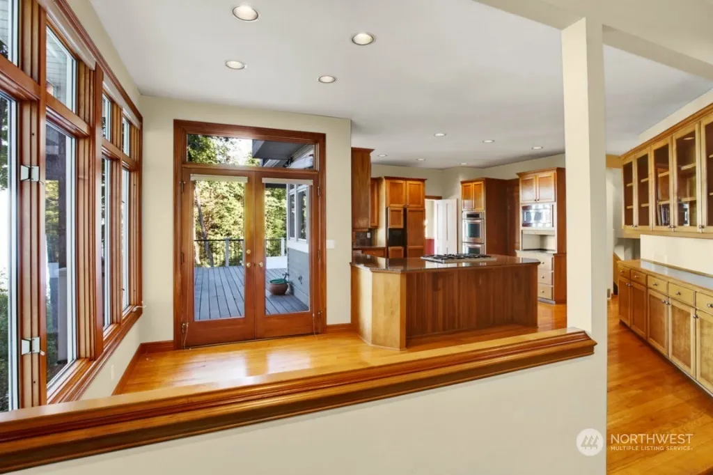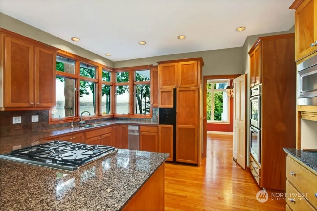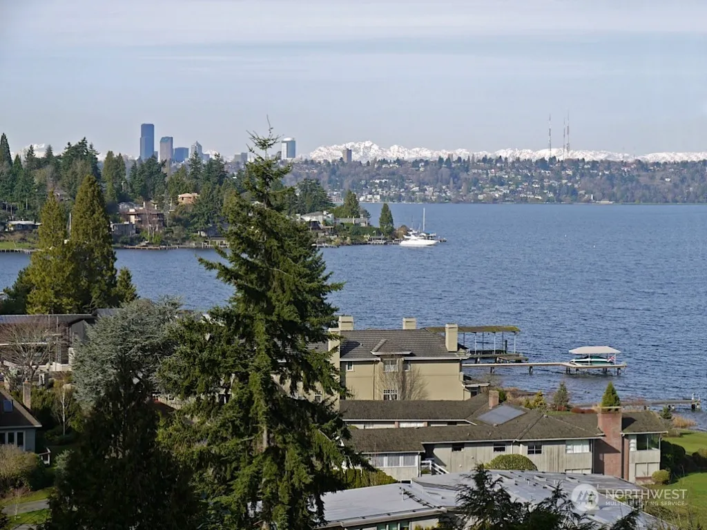 Enjoy breathtaking views of the NW lake, city skyline, mountains through soaring windows in this immaculately kept retreat in the northern end. Entertain guests in the generously sized formal spaces, while French doors beckon to an expansive view deck. The chef’s kitchen, boasting slab granite countertops, features a gas cooktop, a cozy breakfast nook and a family room adorned with a fireplace, bookshelves, and a tranquil courtyard deck/garden. The elegant primary suite with its breathtaking views, offers a spa-like bath for ultimate relaxation. Additionally, the expansive lower-level recreation room with a kitchenette provides ample space for both relaxation and entertainment.