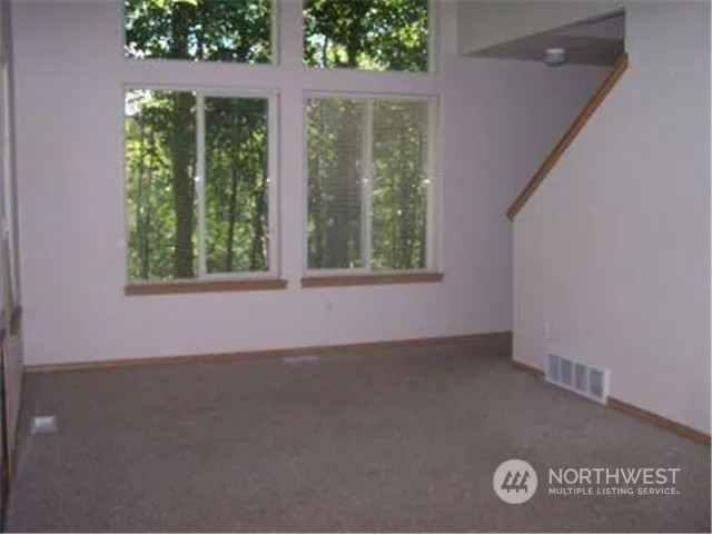 Spacious Duplex with three bedrooms, two and a half bathrooms and approximately 1387 sq ft of living space. Main floor has a living room with gas fireplace, kitchen and dining area with slider off to deck facing green belt, half bath in utility room with w/d hook ups only. The top floor features a master bedroom with full bath, two additional bedrooms and the main bath. Two car garage, 1 Pet Max, no smoking.