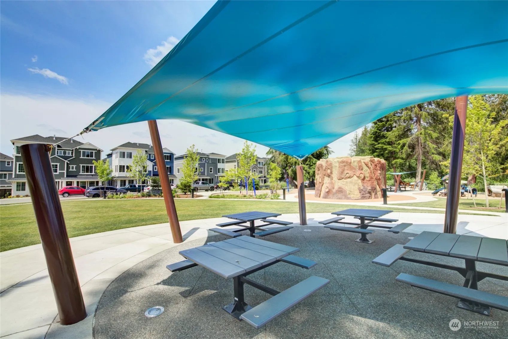 Elegant and bright, east facing three story corner townhome at The Ridge at Big Rock with Clubhouse, Fitness Center, indoor/outdoor entertaining spaces, outdoor fireplace, barbecue area, expansive event lawn, multiple parks. Enjoy charming Duvall shops, restaurants, trails and Microsoft Connector. Located across from the playground of dreams, home has high level upgrades, built in media center. Open concept living on main level, gas fireplace, distinctive dining area, and large kitchen with island plus pantry. Desirable entry level guest ensuite/office. Upper level, primary suite with Elfa designed closet, two bedrooms/second full bath on upper level. Large two car garage with electric car charger. Landscaping included. Renters Ins. Req.