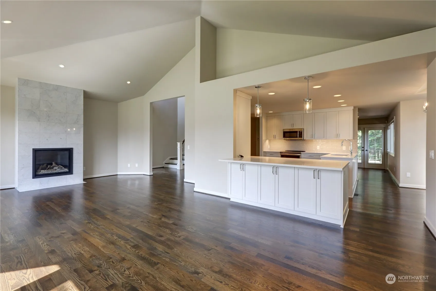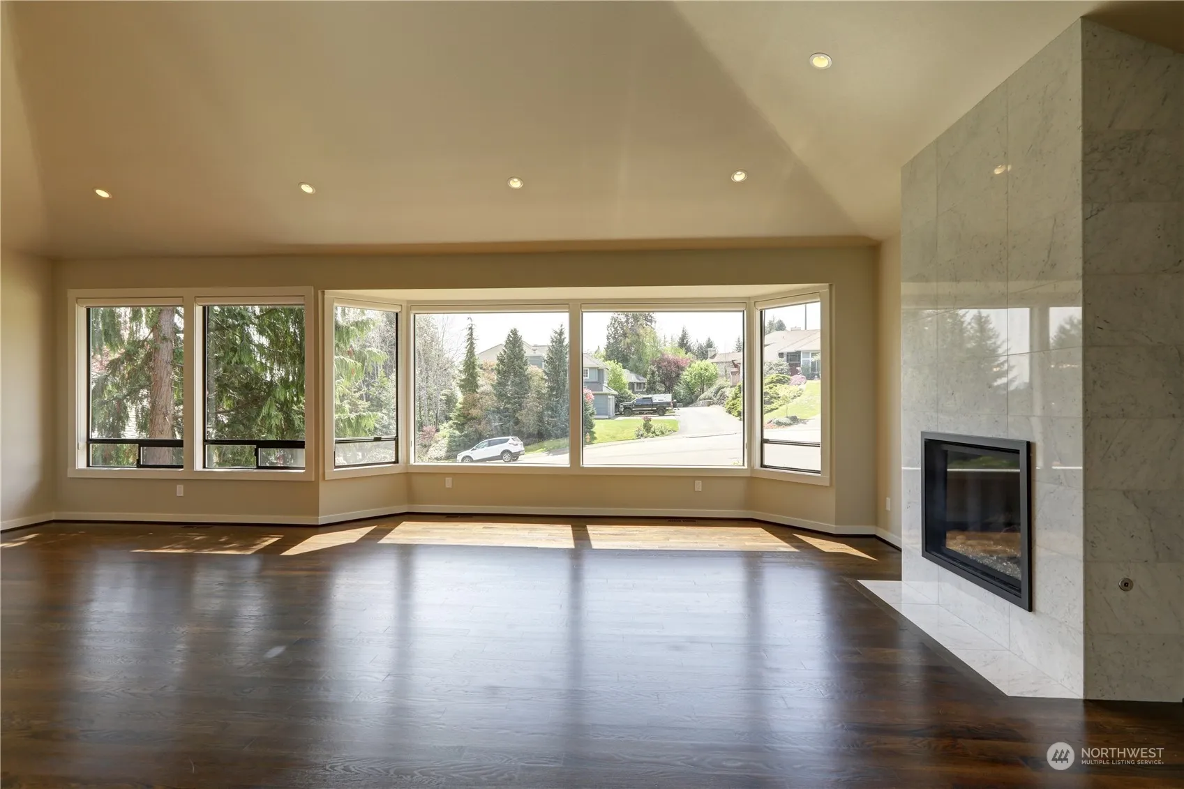 Lovely & spacious home in quiet community of Newcastle. Vaulted ceilings in LR room, DR & kitch. All new kitchen features marble counters, built-in appl. & gorgeous hdwd flooring. Breakfast nook w/bay windows overlooking greenbelt. Fam.Rm off kitchen boasts continued hardwoods & French doors opening to deck surrounded by trees & privacy. Open floor plan in living & dining for maximum space, fp in LR, built-in shelving in DR. Tons of windows & skylights throughout. 2 guest bedrooms & primary suite upstairs features dual sink vanity & beautiful tub + separate shower. 2 addtl. full bath +3/4 bath downstairs. Finished basement includes 4th BR, 2 bonus rooms. 3 car garage, storage, & close access to freeways & shopping! This home is a must see!
