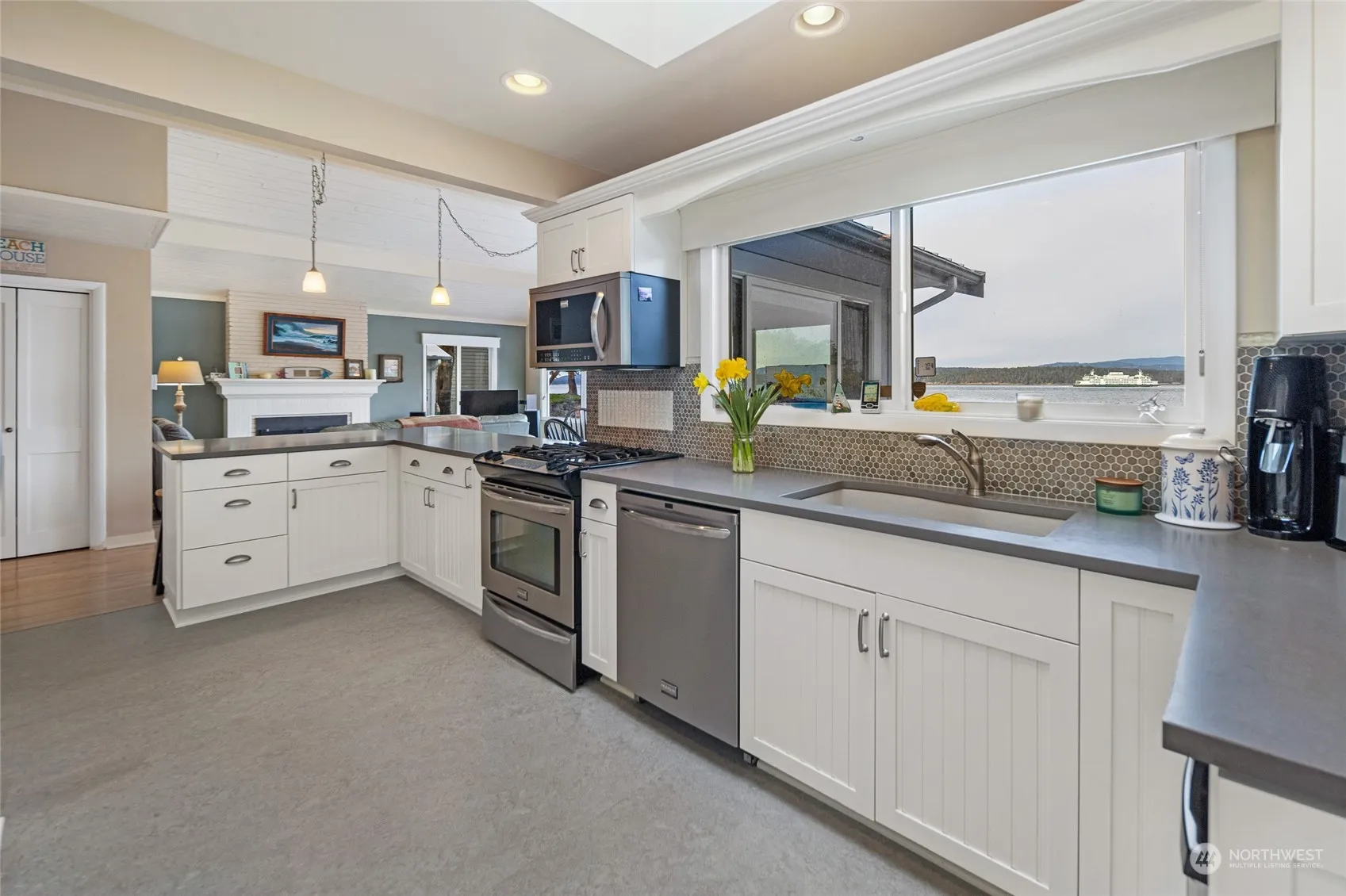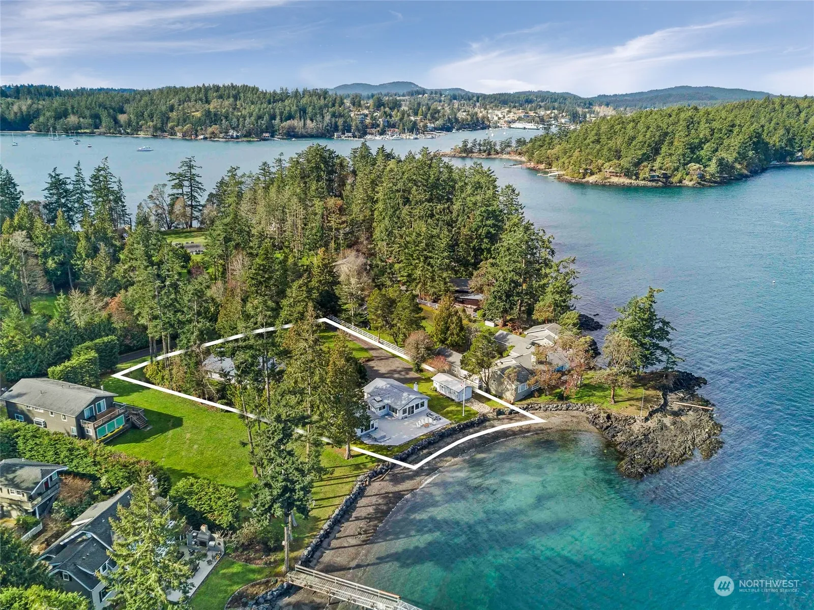 This exceptional low bank waterfront property in a prime San Juan Island location offers everything you need. The classic beach house and separate guest cabin are nestled at the water’s edge, connected by an expansive deck perfect for entertaining! Enjoy sweeping water views of San Juan Channel, Turtleback Mountain and Shaw Island’s shores. Launch your kayak or sit back, relax and watch the ferries, boats and marine wildlife pass by. The beach house features an open floor plan with large picture windows framing the views. The guest cabin is fully self-contained for added privacy. Additional features include a sizeable pool house with steam room, bathroom, sliding door to a patio and Bocce court, hot tub, boat house, well-maintained grounds.