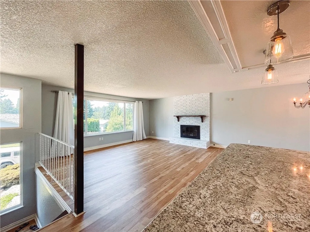 Gorgeous remodeled and meticulously maintained split entry home WITH AIR CONDITIONING available now! Light filled open floor plan with jaw dropping kitchen, electric fireplace, and newer flooring. Dining opens to expansive deck and fully fenced back yard space with RV access as well as greenbelt access to trails that will lead you right to the Woodinville Wineries! Large Primary bedroom with en-suite bath. 3 additional bedrooms all with newer carpet. Lower level provides huge additional living space, utility room, bathroom, and storage/office space. Truly a must see!