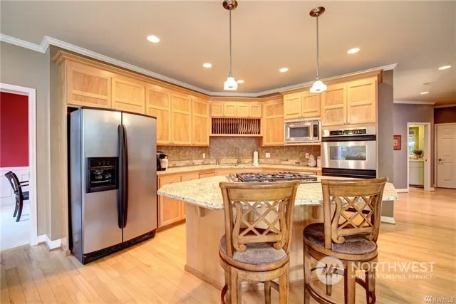 A wonderful 4bed, 3.5 bath home that has all the right spaces for everyone. Formal living & dining for special events and a great room off the kitchen for everyday living. A chef’s kitchen w/SS appliances, double ovens and upgraded gas cooktop. Main suite w/5pc bath & walk-in closet. All other bedrooms have adjoining baths and are upstairs. Home also includes a large bonus room and den. Relax in the beautifully landscaped backyard or enjoy many local parks close by. Home is currently tenant occupied. Please allow 24 hours notice to show. Available July 5