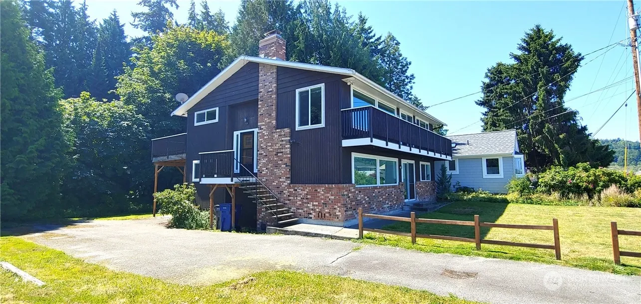Charming Utsalady split level with amazing water view and a stone’s throw from private beach access. Top floors offers 2 bedrooms, living room, kitchen & deck facing the water, and large deck off back. Lower floor features 3rd bedroom, den office, and bonus room. All hard flooring throughout home for easy cleaning. Yard with easy maintenance. Includes, all appliances, water, septic, and beach access. Call for an appointment today.