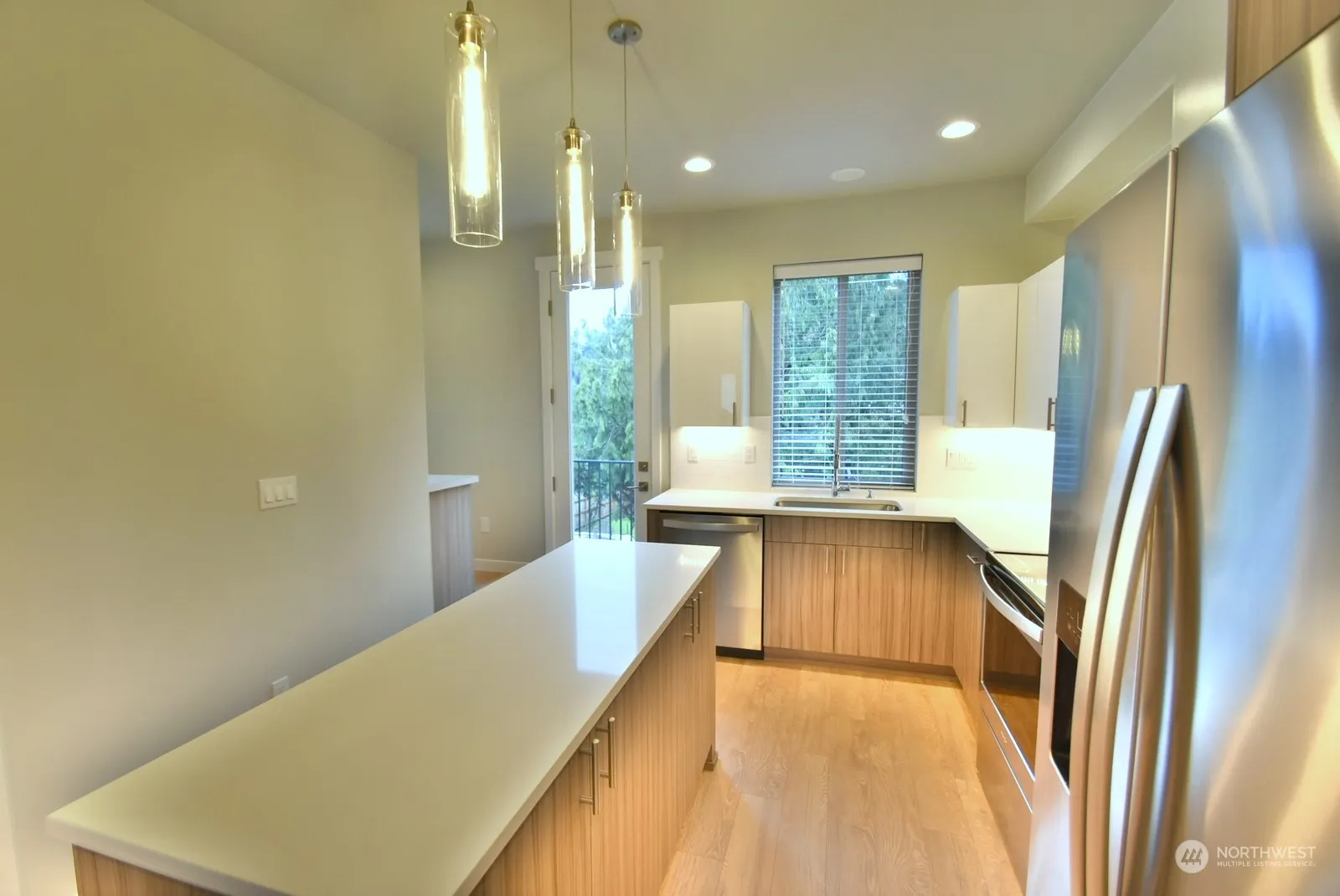 Beautiful townhome features 2 bedrooms, 2.25 baths, a very well thought out office nook and a two car tandem garage. Main floor has a large living room and an open kitchen with quartz counters, high quality kitchen cabinets, and a large kitchen island with seating. Floor to ceiling tile around the fireplace makes it a beautiful work of art. Top floor has 2 large bedrooms, both with en-suite bathrooms. Home has A/C in living room and primary bedroom! Renters insurance required. Small community with a separate, fenced dog park. Landscaping included. 1 small pet possible w/$50/month pet rent. Close to shopping, restaurants and easy access to I-5. Available now.