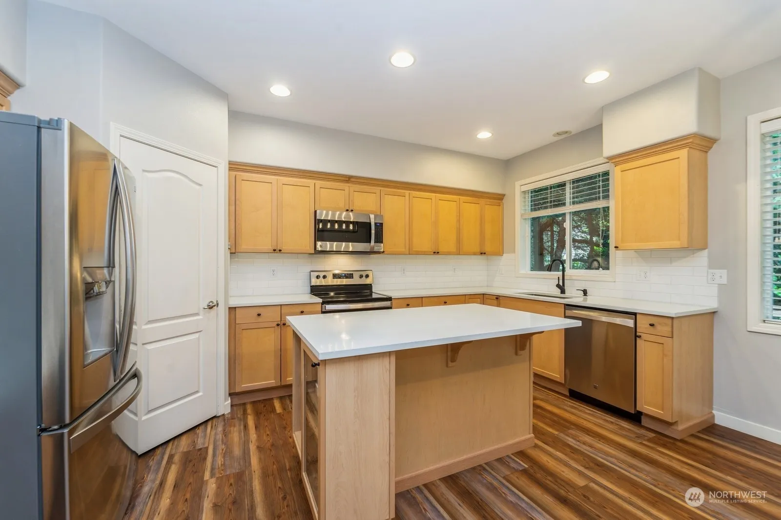 Delightful 2 bed, 2.5 bath townhome in the serene community of Shiloh Village. Boasting 1451 sq ft of comfortable living space, it features a stunning updated kitchen w/ granite countertops & stainless steel appliances. Enjoy the luxury of LVP flooring, a cozy gas burning fireplace, Air Conditioning, and updated lighting throughout. Laundry included in unit on the main floor. The home includes a 2 car garage with overhead storage and 2 additional parking spots out front. Two bedrooms upstairs including a Primary Suite with double sinks, skylight & walk in closet. Outside, a fenced backyard offers privacy and a charming covered deck for relaxation. Screening and application criteria can be found at www.seattlerentalgroups.com/application.