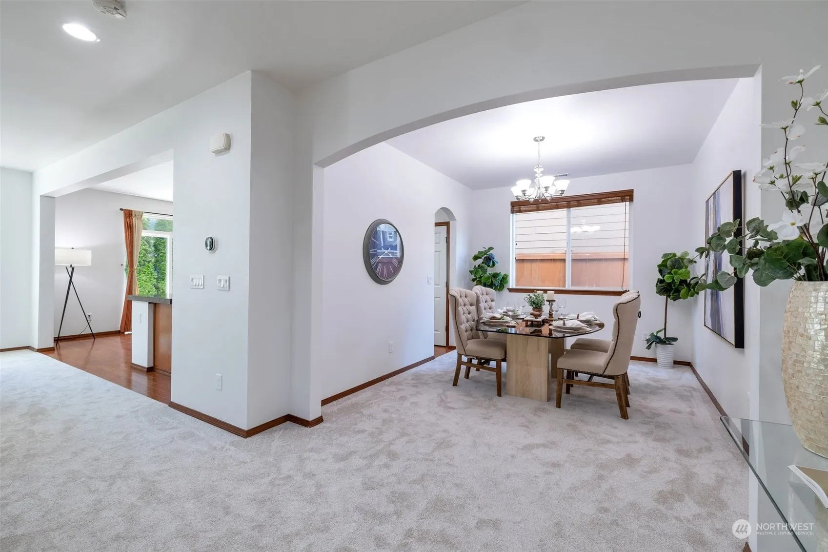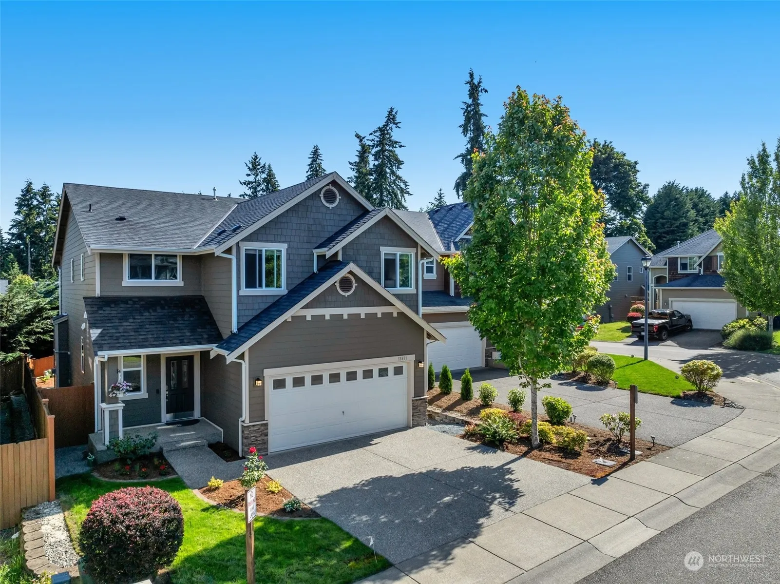 Immaculate 4 bedrooms North facing Craftsman home in the sought after Woodmark community! Brand new carpet & refreshed paint welcome you into the open floor plan, high ceiling hallway, formal dining area & Cozy Gas fireplace in the living room. Open Chef kitchen w/ huge center island, nook area, granite counters, SS appliances, pantry & plenty of storage.Upper level includes elegant primary bedroom,vaulted ceiling, 5 piece bath & walk in closet. Spacious additional 3 bedrooms, hallway bathroom & utility room upstairs.Fully fenced private w/easy maintenance yard. Central AC. Attached 2 car garage.Excellent location just a few minutes to downtown Woodinville, Sammamish river trails, freeways, wineries & parks.Highly ranked Northshore Schools.