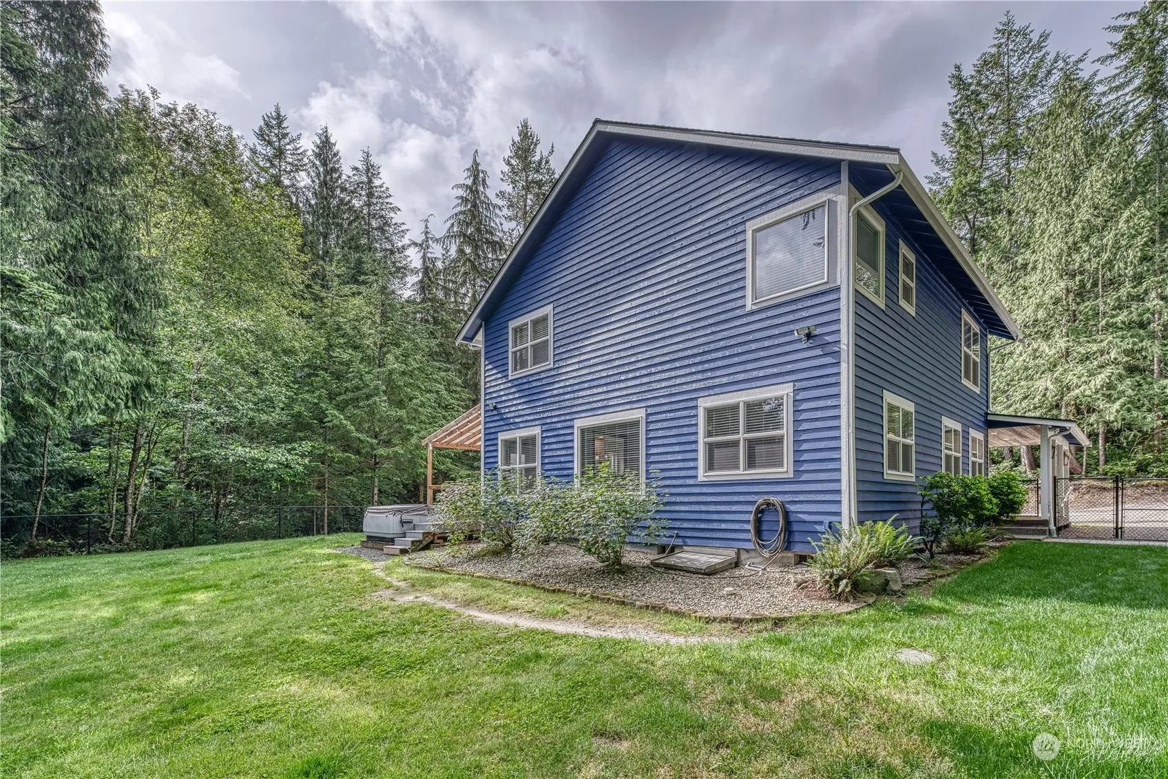 Situated on a private 2.5 acre lot in Seabeck, the main floor of this 2110 sqft 3BR 2.5BTH home offers an office/den, great room with Living/Dining areas, bright eat-in Kitchen, Utility RM w/ washer & dryer, and large attached 2-car garage. Upstairs is the primary BR with 5pc ensuite, two large bedrooms, full shared bath, and spiral staircase to loft Bonus room! Exterior includes security system, sprinkler system, fully fenced yard, star link internet system, heat pump, shared well, individual septic, garden fountain, gazebo w/ fire pit, hot tub, and large Shop with Carport! Just minutes to Miami Beach Boat Launch and the recreational waterways of the Hood Canal, where Dungeness Crab, Oysters, and Clams await!
