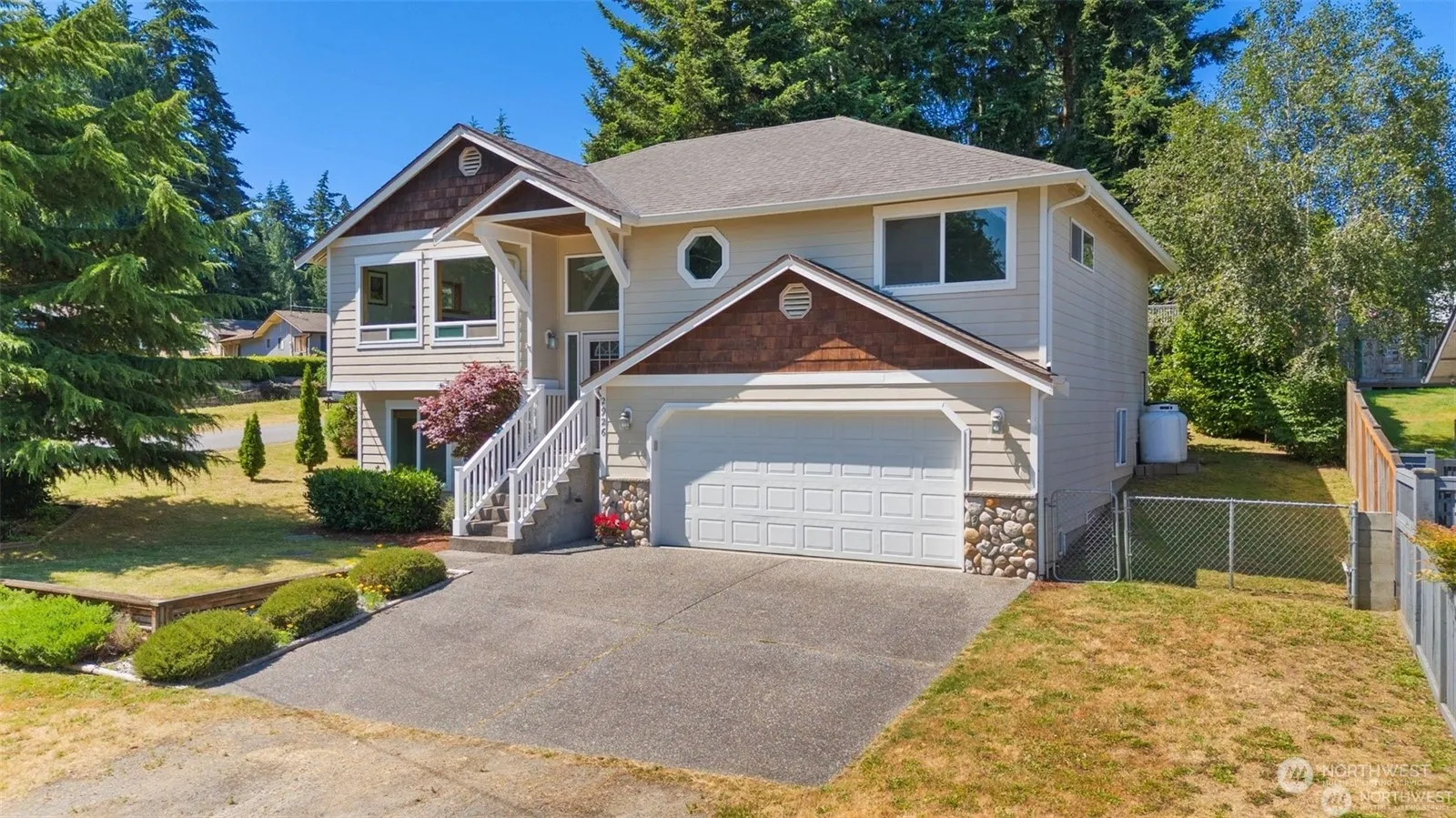 Enjoy breathtaking views of Port Susan and the Cascade Mountains from this charming corner lot split-level home. Featuring vaulted ceilings in the kitchen and living area, a gas fireplace, and a spacious back deck, this home is designed for comfort. The interior includes both carpeting and laminate flooring throughout. The primary bedroom boasts beautiful mountain and sound views, a walk-in closet, and an en-suite master bath. The lower level is ideal for entertainment, with a large rec room, bonus room, and a 3/4 bath. The garage offers ample space for a workshop. The fully fenced backyard provides privacy and a great outdoor space. Beach access. Pets negotiable. One year lease. No smoking. Call for an appointment to see it today!