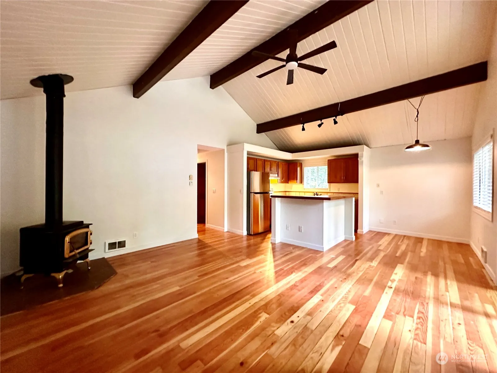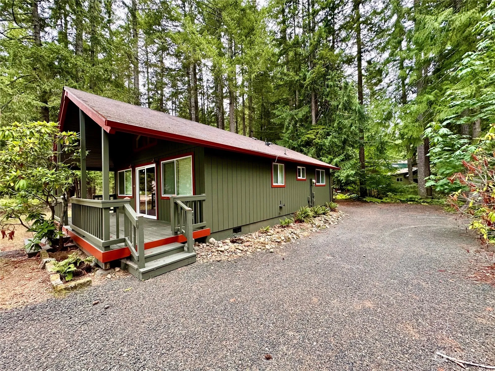 Cute chalet in Lake Cushman with original hardwood flooring, roomy kitchen and gathering area leading onto large front deck for relaxing. Cozy up, as the season changes, with the woodstove – making this a year round cabin for weekend (or full time) living. 2 nice sized bedrooms with closets. Attached storage shed in back- for all of your golf/lake/beach/hiking toys. Backs to greenbelt for privacy. Situated between Lake Cushman and Lake Kokanee, near the Lake Cushman golf course and just minutes away from the Olympic National Forest, this home offers recreation lovers a perfect spot to retreat to. This rental is available now.
