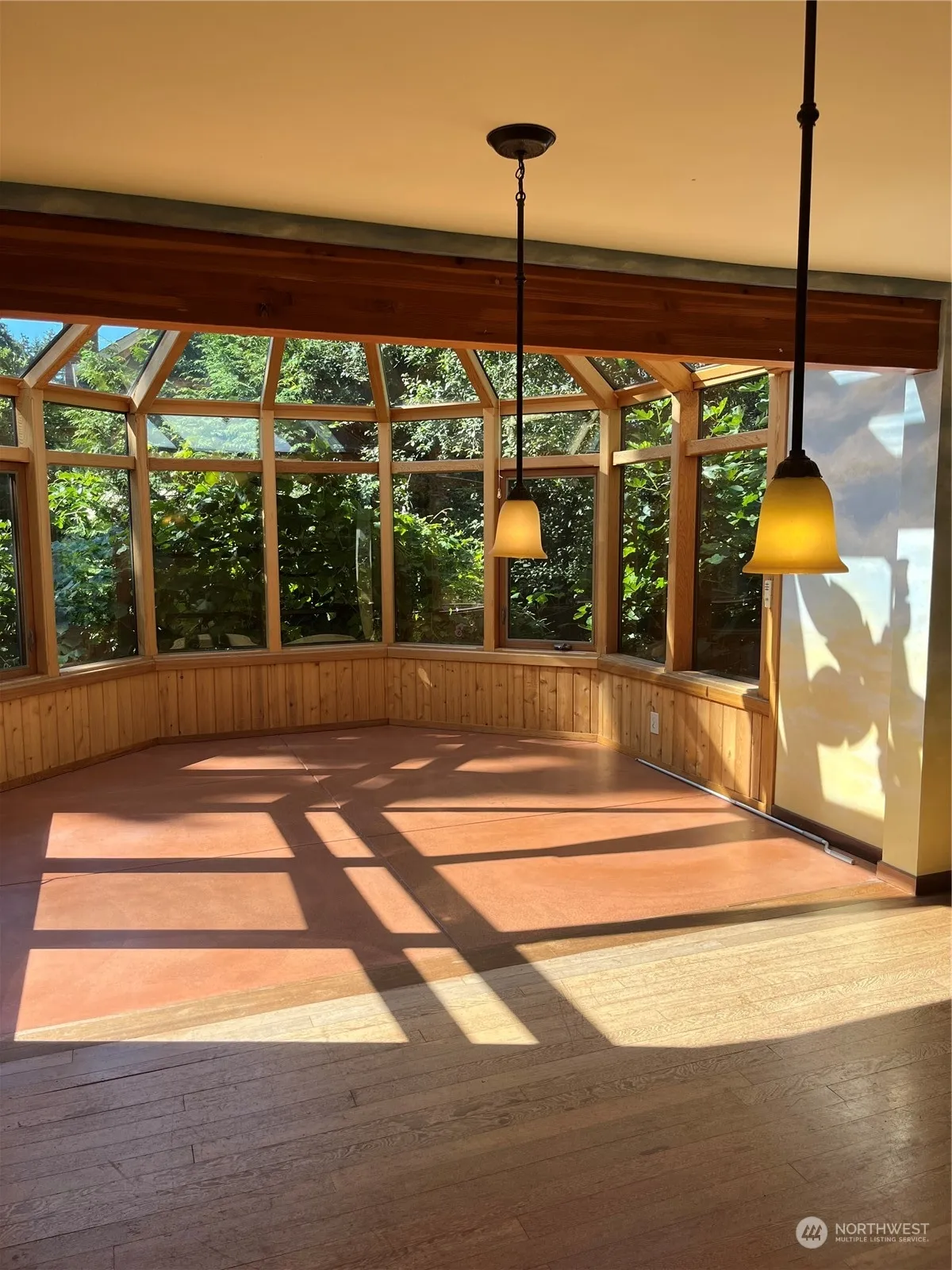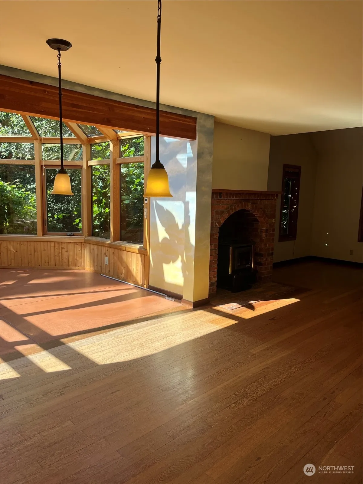 4 Bed 3 Bath in Winslow. Solarium w/ radiant heat, kitchen with appliances, dining area with garden views and double glass door access to backyard & deck. Living room w/wood burning stove & vaulted ceilings. Main Floor bedroom with closet, bathroom w/ shower and laundry room w/ washer & dryer, & 2 car attached garage. Master bedroom w/ storage, master bath, & access to artist studio. 2 additional built in bed/lounger. Fenced back yard w/ fire pit and gardens.
