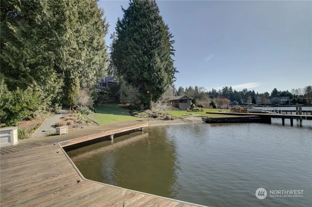 Available Now. Enjoy 30’ of prime no-bank west facing waterfront at this charming lake front property in Hunts Point. The home is perfectly situated at the end of a long private driveway on a serene street-to-lake lot. Home offers 3 beds/ 2.75 baths. Entertainment sized deck + expansive backyard is great for hosting summer gatherings! Basement works perfectly for guest or nanny quarters complete with bedroom, ¾ bathroom, living space & kitchenette. Lush landscaping surrounds the home, w/yard service is included. Waterfront features no-bank sandy beach access, and expansive private dock with deep moorage. Stunning views, unrivaled location, award winning schools, and easy access to Seattle & Bellevue. Welcome home!