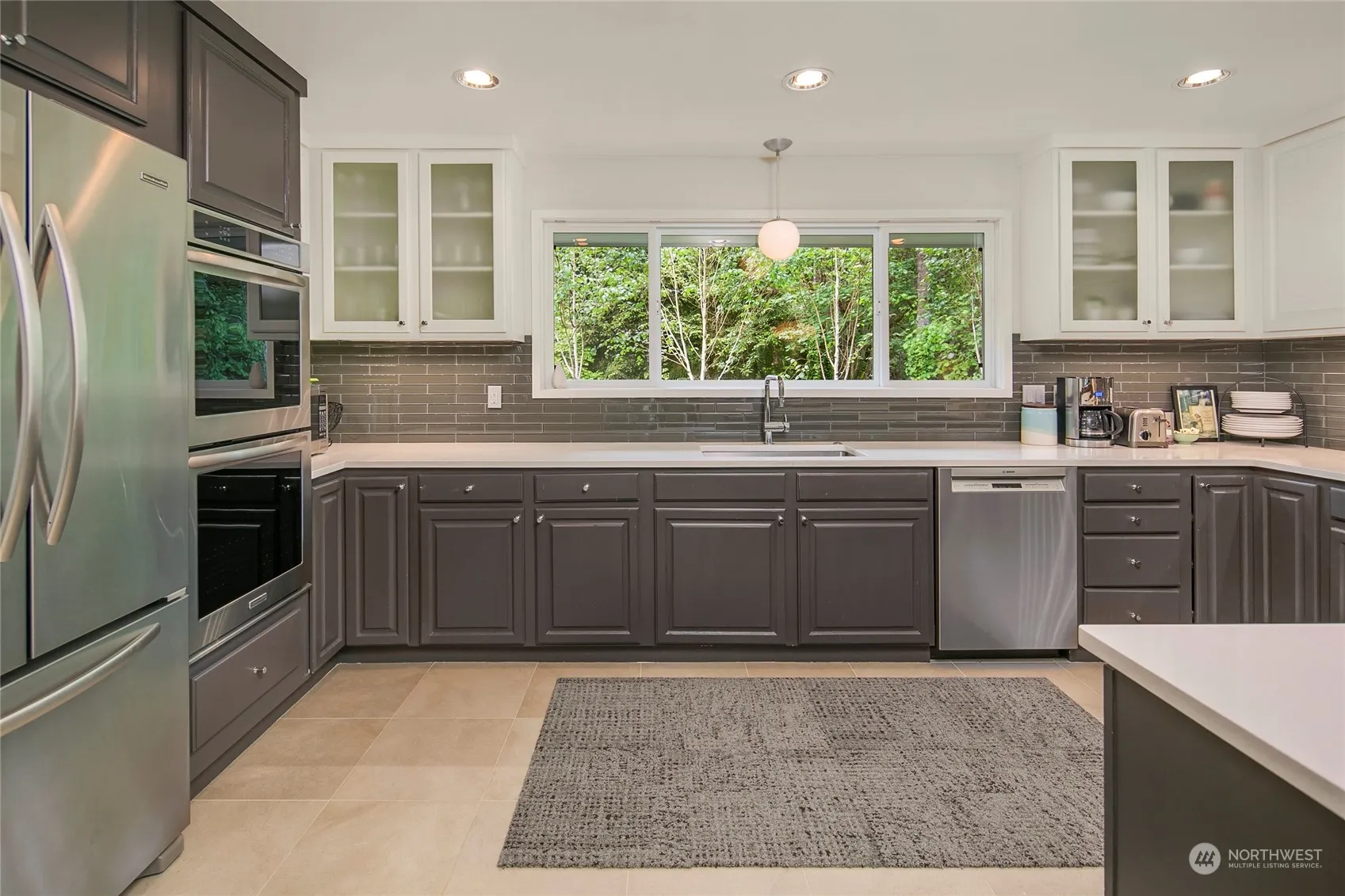 Avail now. Beautiful mid-century modern rambler in the heart of Mercer Island. Meticulously maintained corner lot, surrounded by vibrant & mature landscaping. Upon entry you’ll be greeted by classic & recent modern finishes that provide so much character. Comfortable flrplan makes for easy living & entertaining. Home offers, formal living w/abundant natural light, spacious dining that is conveniently off kitchen & cozy family w/FP & French doors for access outside. Lovely modern kitchen w/designer colors & SS appliances, including a double oven. Incredible primary suite, spacious room w/sitting area, French doors to deck, oversized walk-in closet & attached spa-like bath. Large & flat backyard w/ patio & deck. Yard Service Included. A/C.