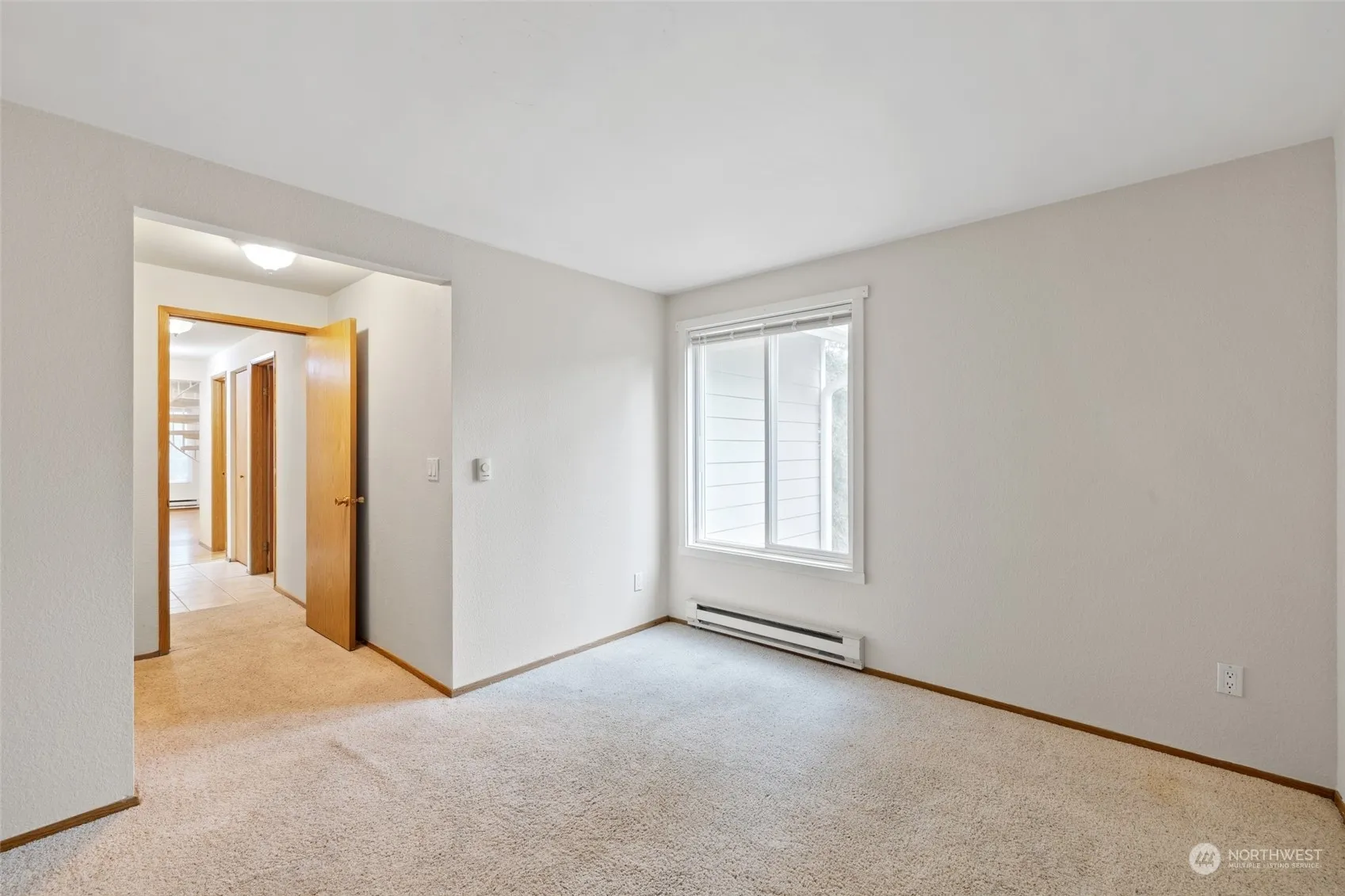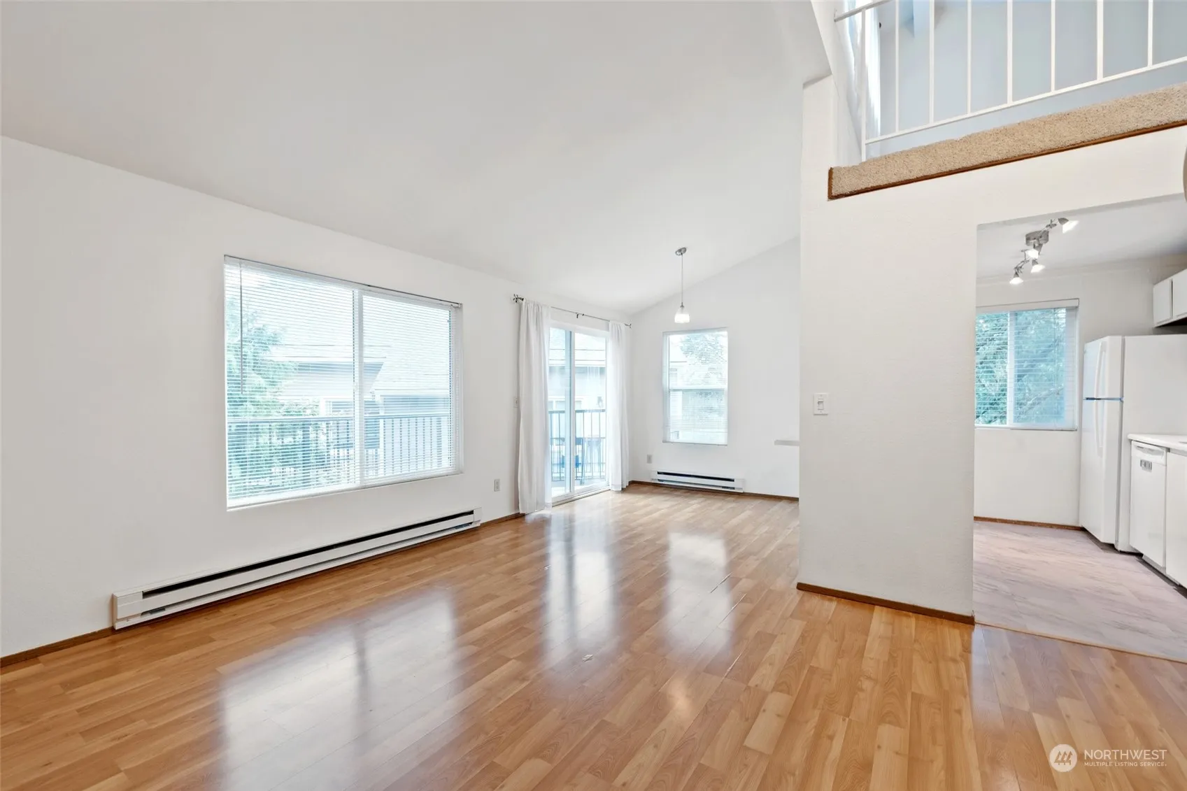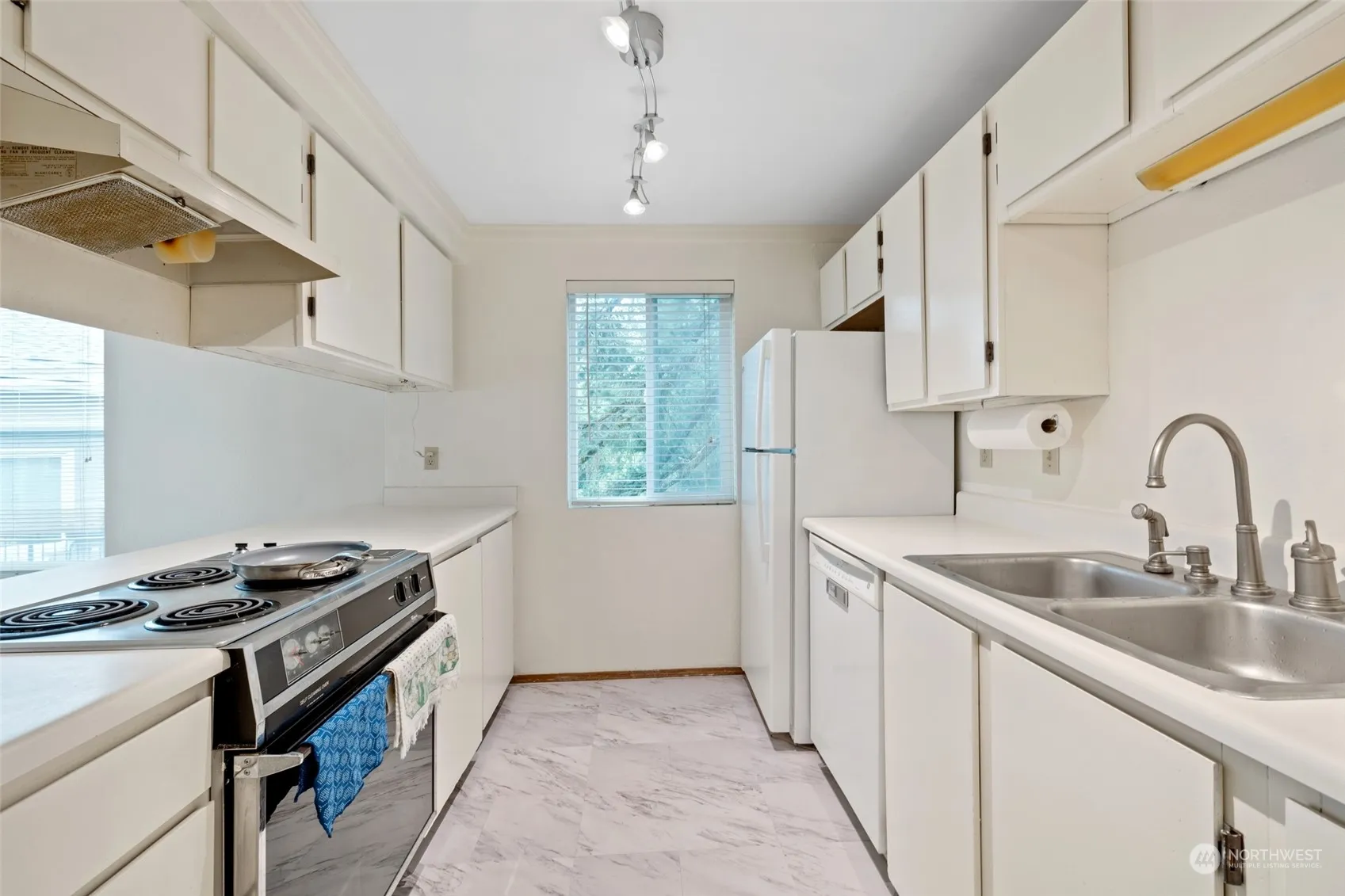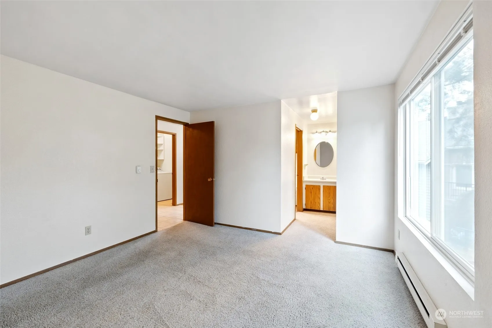 2 bedroom, 1 full bathroom Ballinger Creek Condo with loft space. Open living space includes wood-burning fireplace, kitchen, and dining room with access to private balcony. Balcony has additional storage closet and view of wooded courtyard with running creek. Spacious bedrooms include primary bedroom with separate sink and vanity. Loft can be used as office, media room, exercise space, you name it. Utility room with Washer & Dryer included, plus additional storage space. Close to I-5, several parks/trails, shops & entertainment. 1 covered carport included plus ample visitor parking. Water/Sewer/Garbage included in rent.