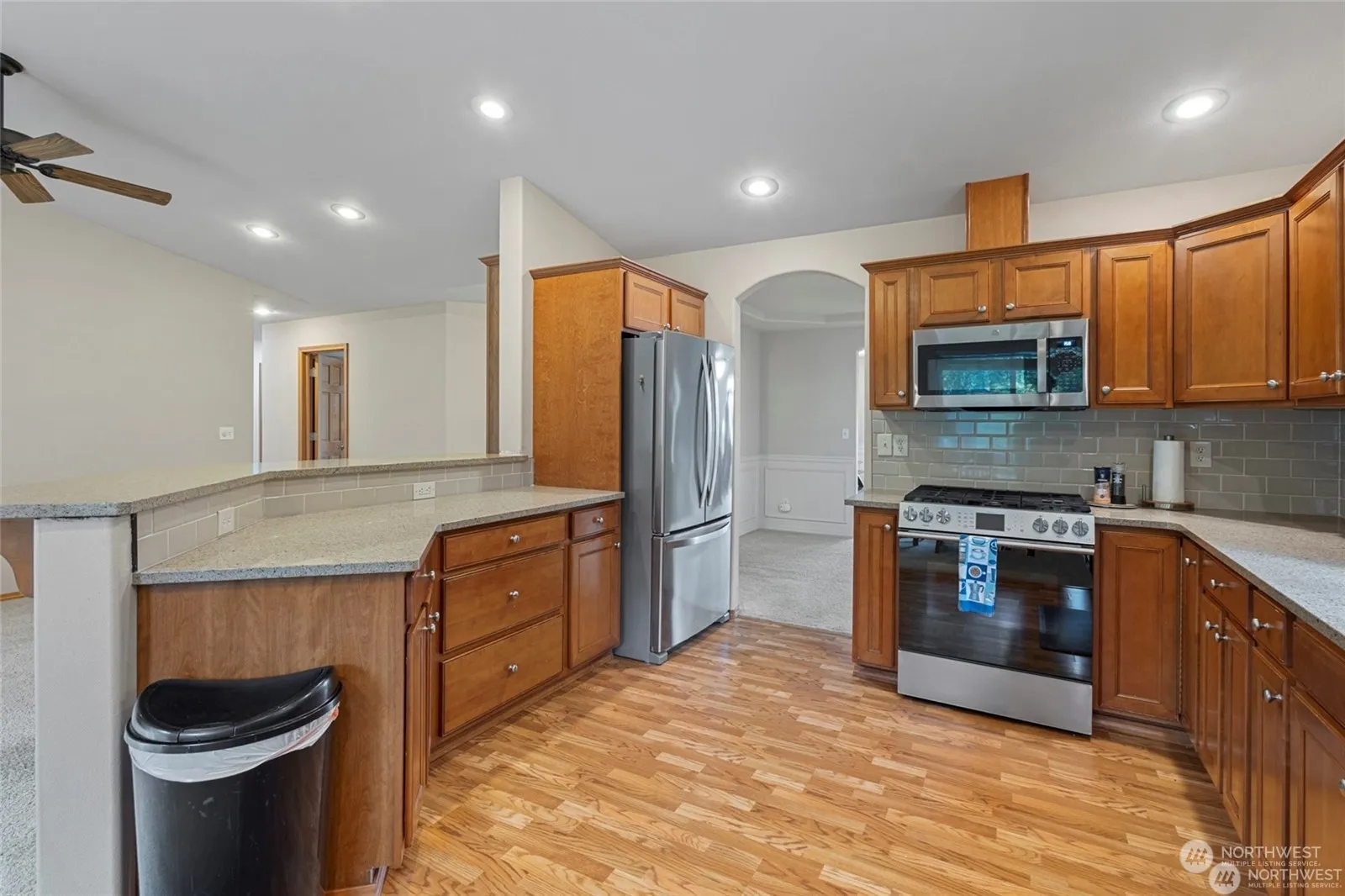 Welcome to the Gardiner Terrace Community! This 3 bed, 2 full bath single level home has flowing open floor plan. Kitchen has been fully updated and has newer stainless steel appliances. Formal dining room, eating space off kitchen, breakfast bar and family room make this home perfect for entertaining. Primary bedroom has en suite bath with soaking tub, shower and spacious walk-in closet. Radiant heat throughout with new high-end/tech boiler. Utility room with nice washer/dryer set leads to huge 3 car garage with workspace for all of your projects and toys! Located on a fully fenced, well-kept, 12,197 sqft lot. Close to schools, parks, shopping, amenities, restaurants and less than 20 minutes to Bellingham! Ready to RENT