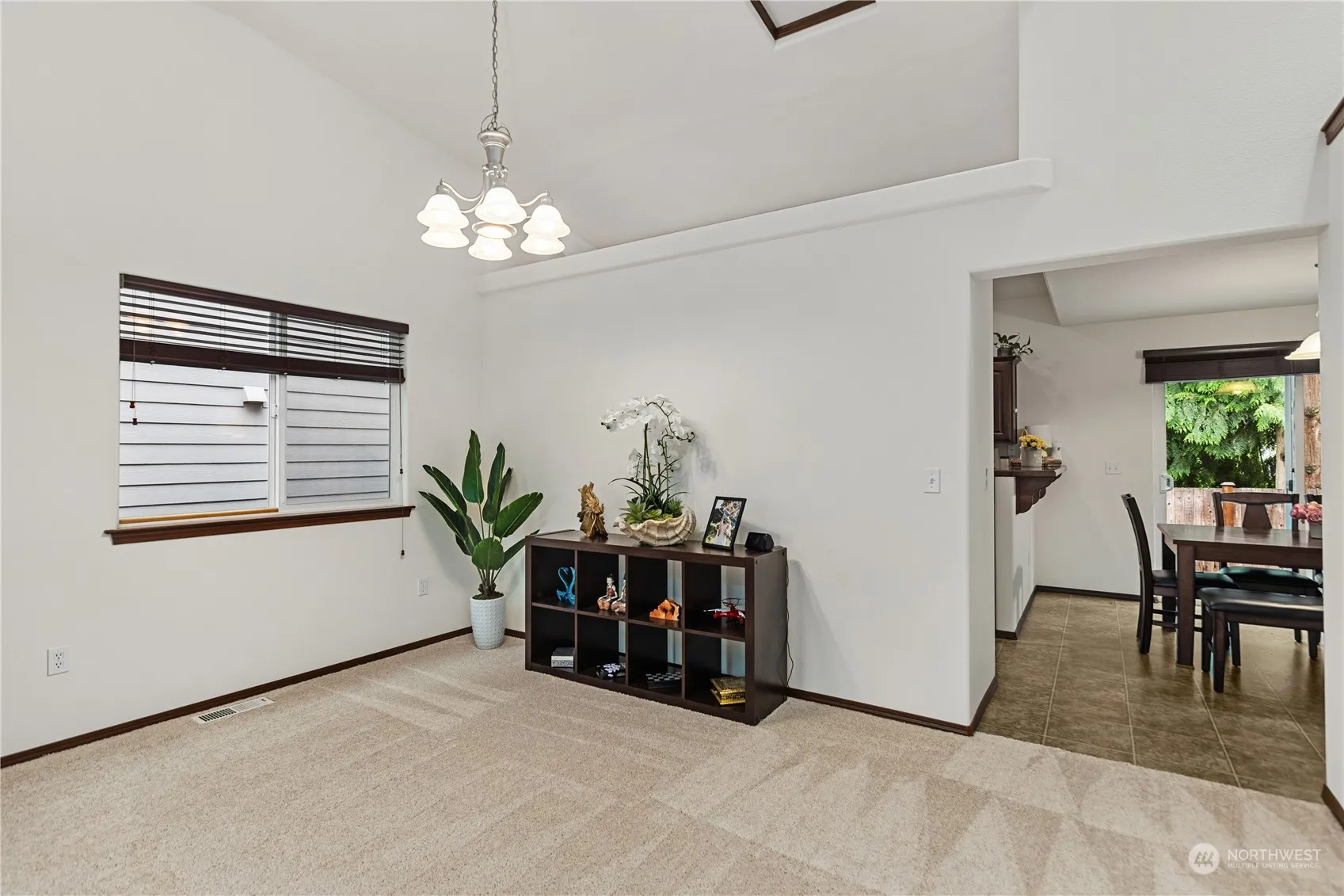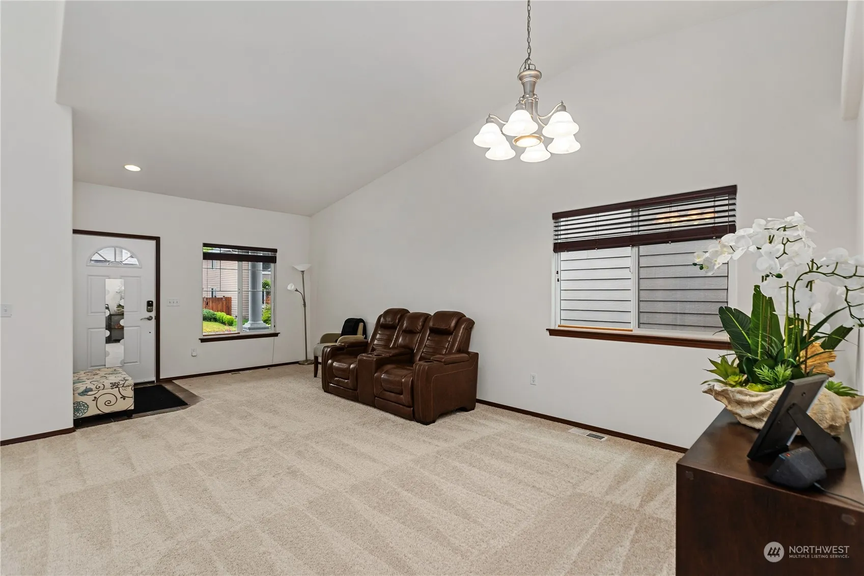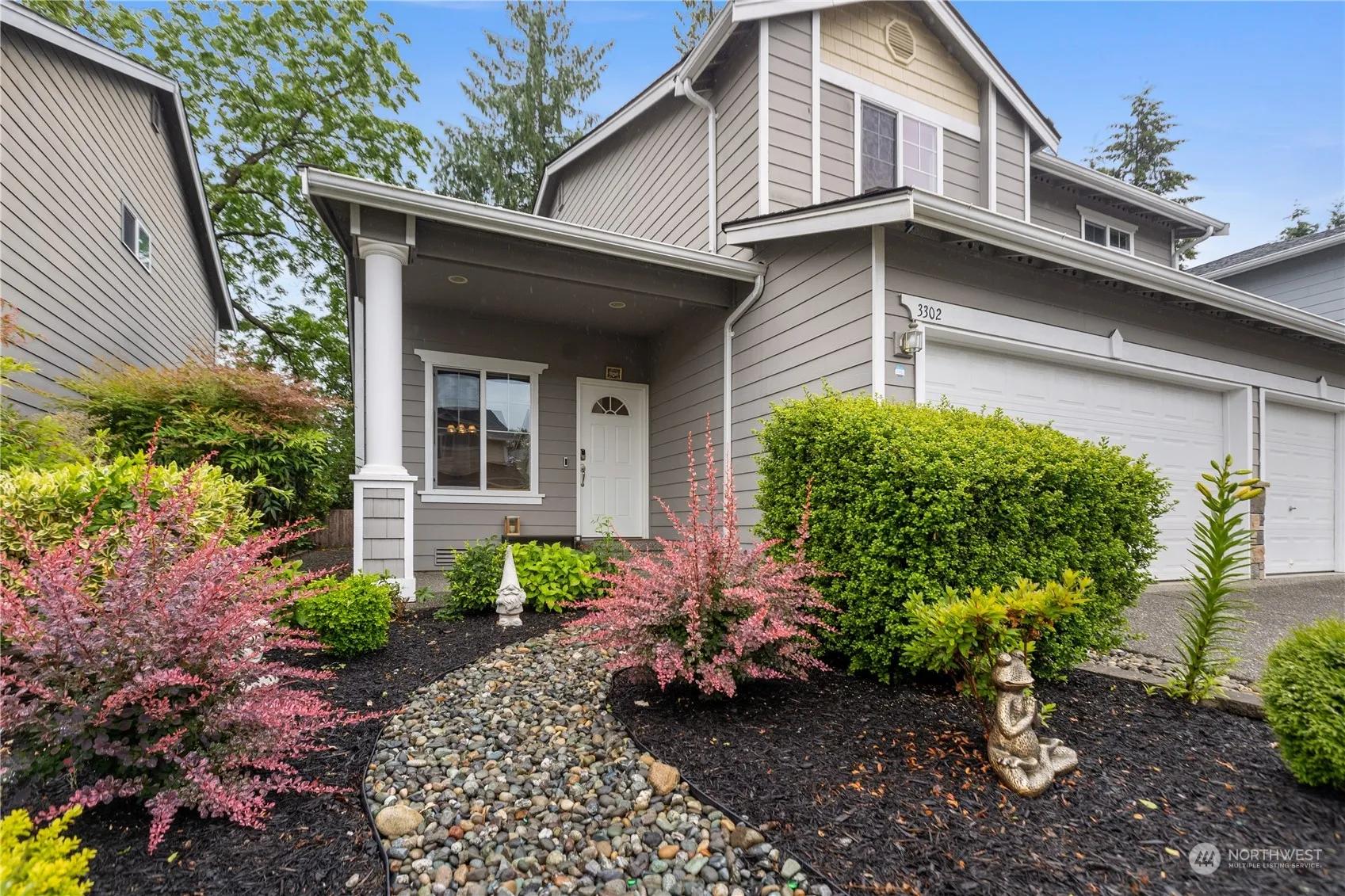 Turn-key, North-facing home in the heart of Mill Creek. Soaring vaulted ceilings and new updates including carpet, paint, roof, AC, and appliances. A welcoming main floor layout with a bedroom and 3/4 bath. Enjoy gatherings in the open-concept living room, dining area, and kitchen with eating bar. The luxurious upstairs primary suite features a fireplace, sitting area, dual vanity, soaking tub, and walk-in closet. Three additional spacious bedrooms ensure comfort for everyone. Relax or entertain in the professionally landscaped, fenced yards. 3-car garage with ample driveway parking. Located within the highly-rated Mill Creek school district. Close to community parks and trails, offering a perfect blend of lifestyle and convenience.