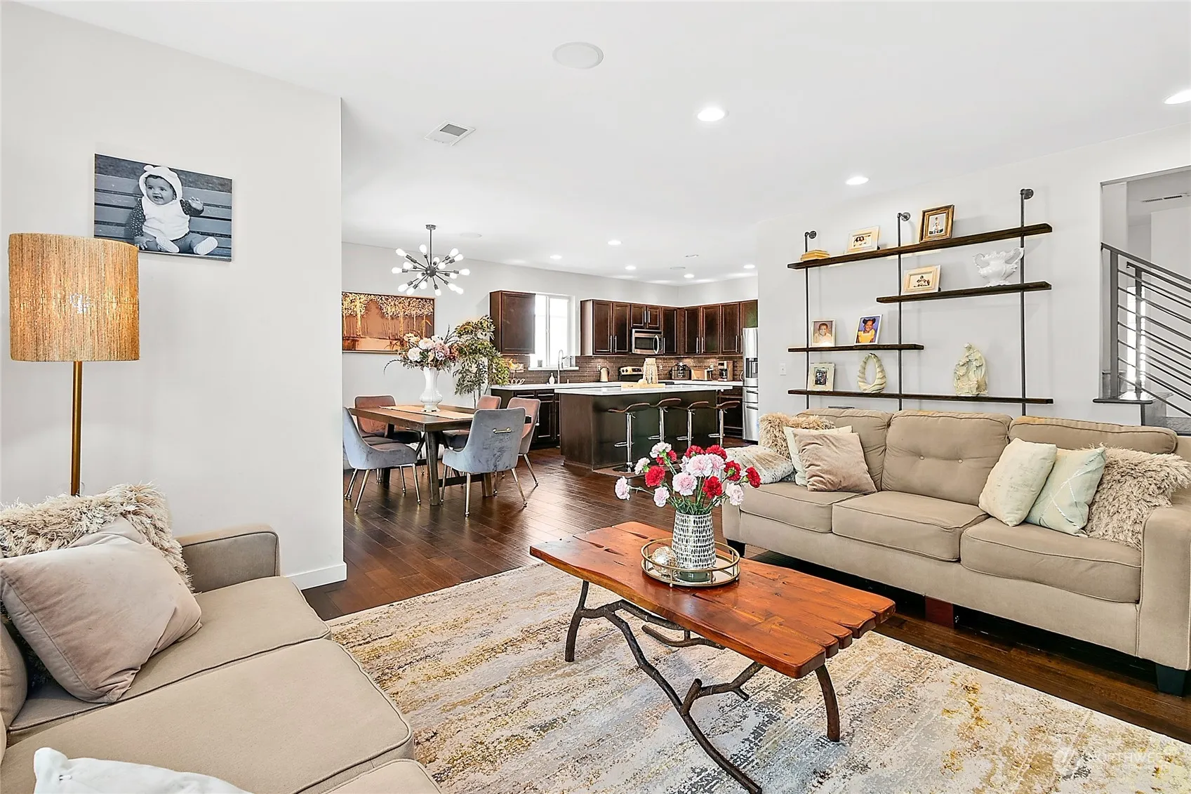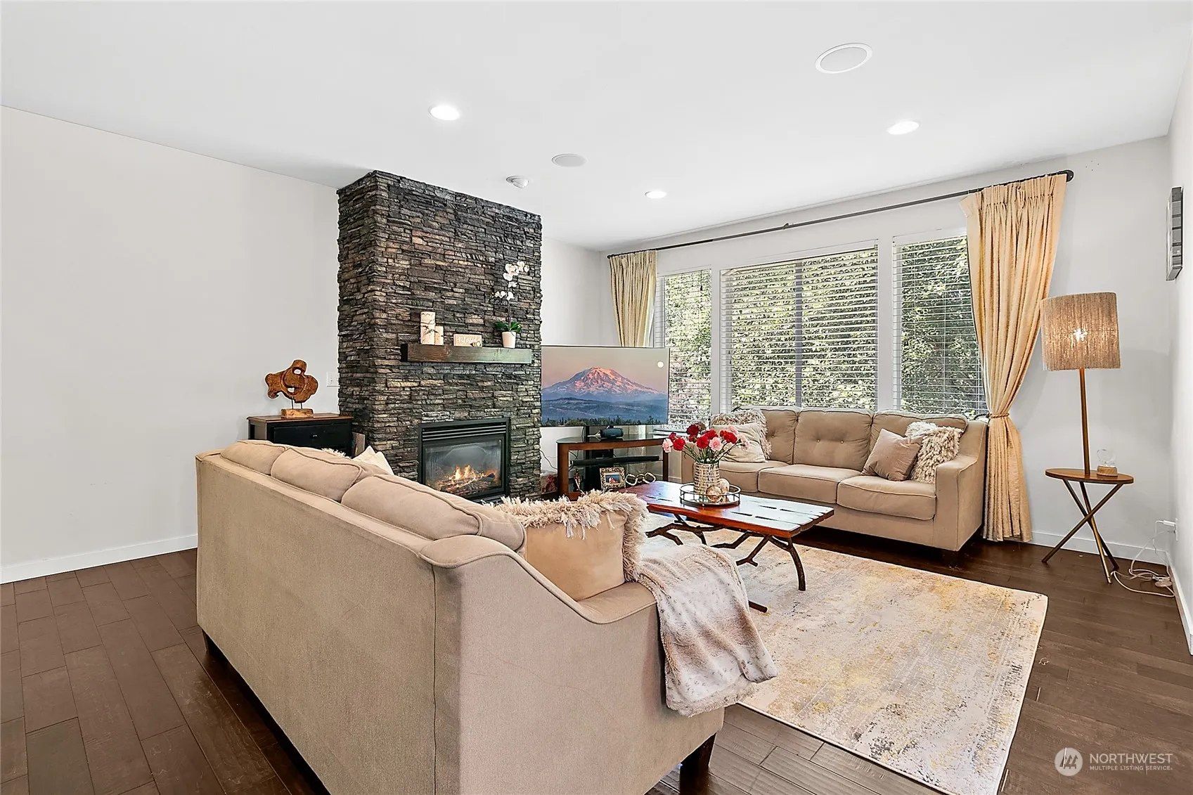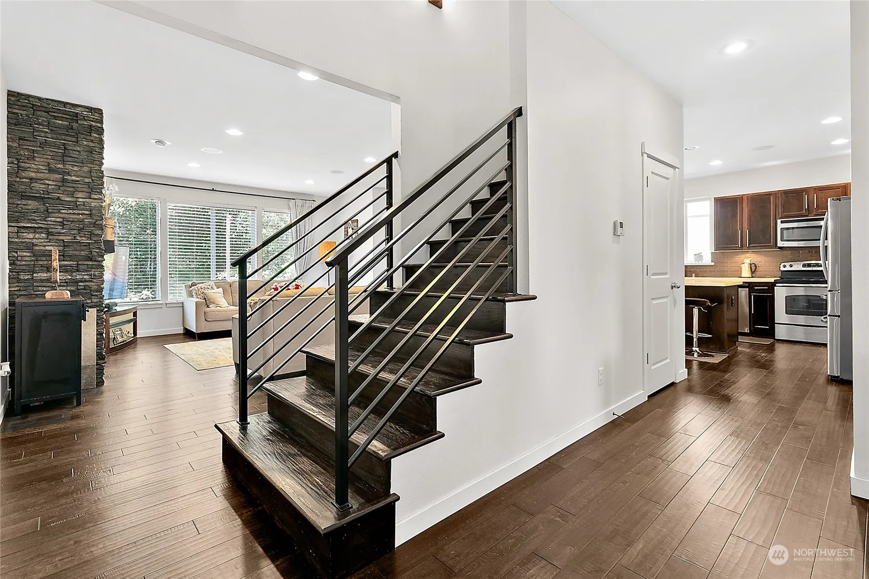 Stunningly and tastefully designed, 3-storey home in a great location! An inviting covered entry, with hardwood floors and elegant touches throughout. Open concept floor plan has a living room with a fireplace & a dining area. The dining area opens to an extensive decking for outside enjoyment. Gourmet Kitchen with large island, stainless appliances & lots of cabinets. Owner’s suite with walk-in closet & spa-like baths with designer tiles. Huge private Bonus/entertainment space on the upper level with built-in closet. 2 car garage & a fully fenced huge backyard for summer BBQ and gatherings! Great location with easy access to freeways and all the amenities!