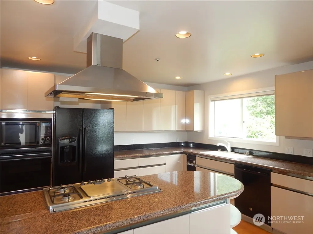 Framed by captivating views, home is perched above neighboring waterfront homes. Refreshed with new siding and a contemporary exterior design, home features an impressive 2-story living and entertainment size foyer with wet bar. Kitchen cooking island overlooks eat in kitchen and adjoining family room with fireplace and greenhouse windows taking in sparkling lake scenes plus BBQ deck. Mesmerizing top floor catwalk to massive primary retreat has double walk in closets accessing secluded view deck and adjoining den. Lower level has three bedrooms, two full baths, & bonus room leading to deck and secluded patio. Home shines with new paint and high end carpet. Minimum lease through June 2025, end of April 2026 preferred. Renters Ins. Req.