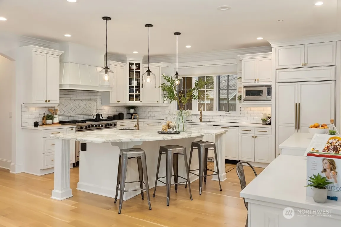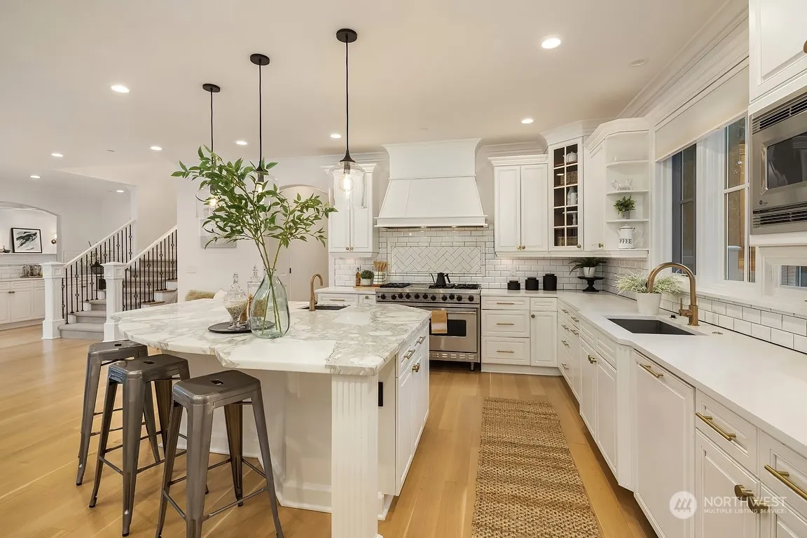 Avail now. Beautiful modern farmhouse in Yarrow Point. This gated estate includes main home & flexible ADU space above detached garage. Bright interiors w/tasteful designer finishes. Very comfortable & open floorplan. Gorgeous chef’s kitchen w/marble slab, Subzero fridge, Viking range & large pantry. Kitchen opens to family & eating nook w/NanaWall doors to outdoor spaces. Main floor office. Huge bonus rm w/vaulted ceilings. Lovely primary suite w/gas FP, spa-like 5-piece bath & walk-in closet. Home has almost a zero-dollar electricity w/recently installed solar panels. Super-efficient A/C. Mature landscaping surrounds the home, fully-fenced & flat backyard. Prime location, easy commuting. 1st time rental property. Yard service included.