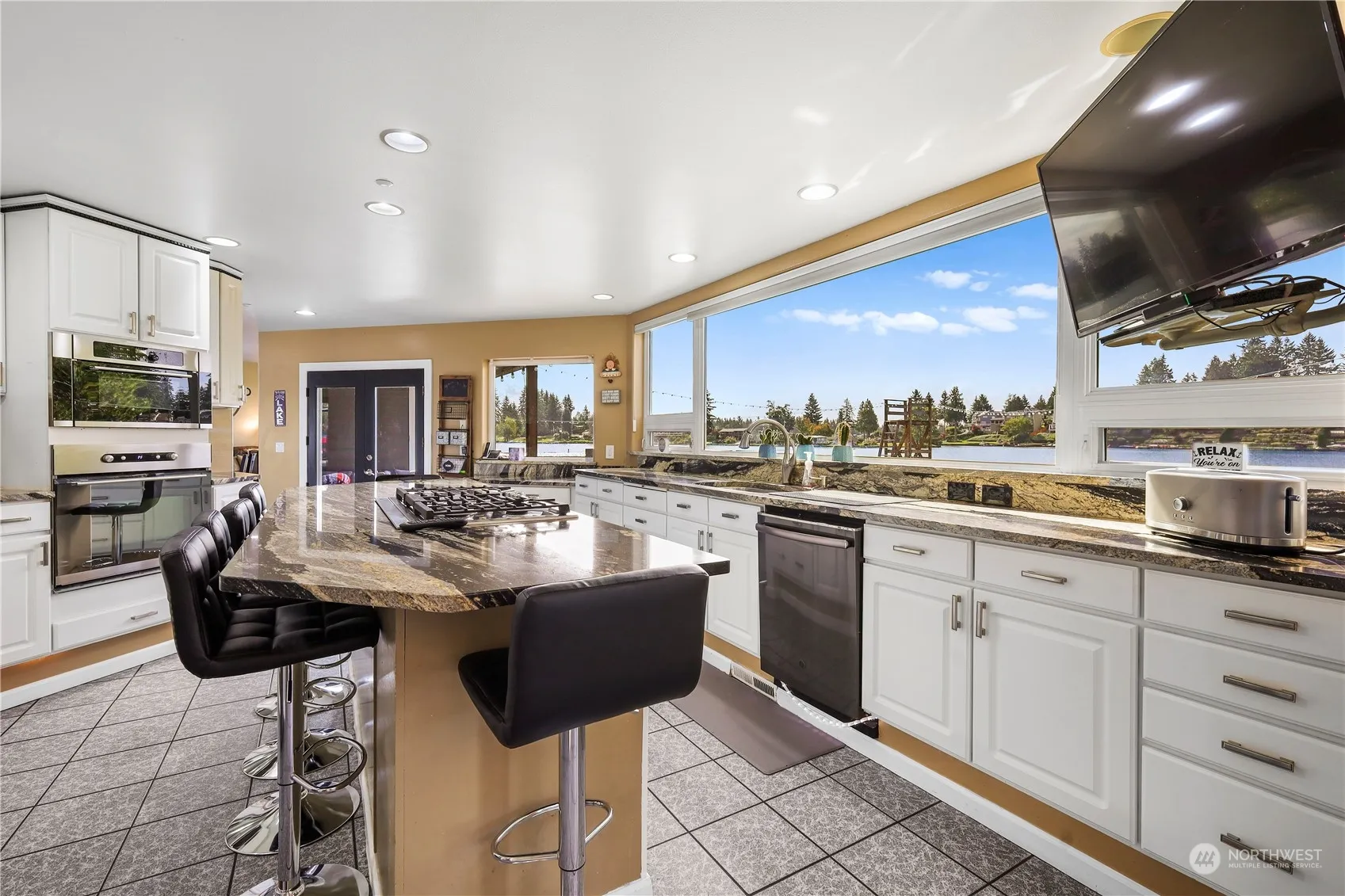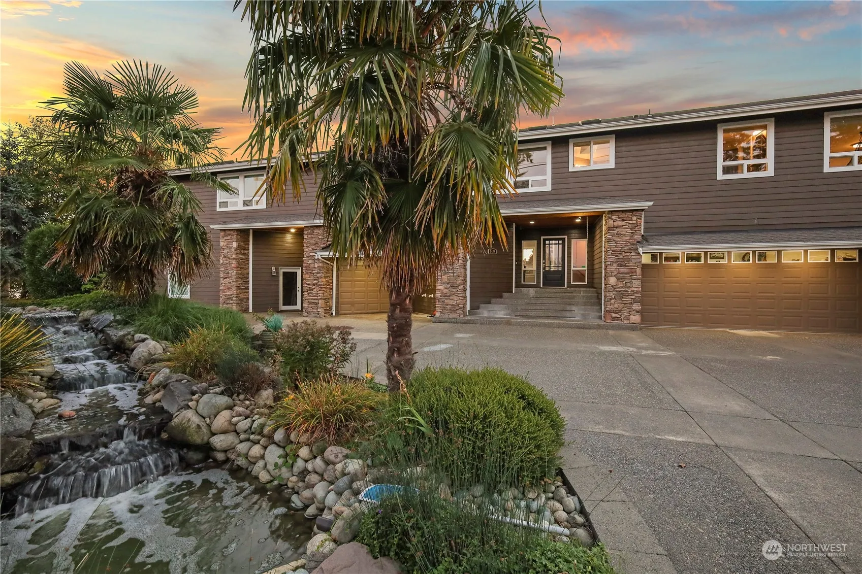 FOR RENT Lake Tapps No-Bank WATERFRONT. Fully FURNISHED. Sleeps 11. Huge Kitchen w/ 6-stool bk bar, granite, tv, stainless. Dining set for 8. Family rm w/ sur sound, recliners for 8, power blinds, gas FP (all w/ lake views!) Upstairs main suite w/ CalKing bed, massage chair, WIC, huge bath w/ tile shower, soaking jetted tub. Open area w/ piano & xbox. Laundry w/ 2 W/D sets & tons of counter/cabinets. 2nd main suite w/ king bed, WIC & full bath. 2 more bedrm up w/ WIC’s & Lake views + balconies. 3rd level offers kids room (no door) w/ double bed, toys & kid’s car bed. All rooms w/ large TVs. Yard w/ waterfall, basketball hoop, playset, BBQ, sand beach, dock, boat/seadoo lifts, concrete patio, deck with seating. All dishware & linen provided.