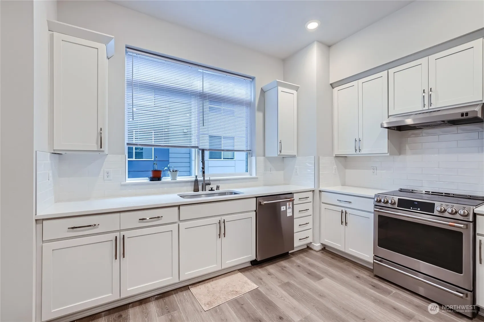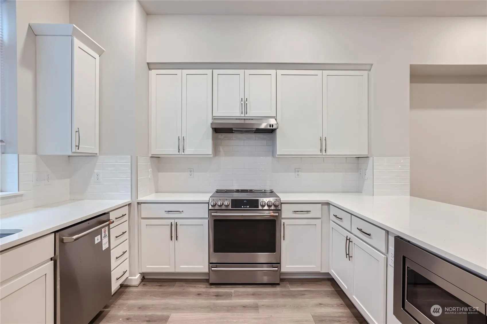 Discover the sophisticated charm of the Hickory Townhome at Berkley Trails, a distinguished 4-level residence featuring three bedrooms plus an office, a lower-level garage, and exquisite finishes throughout. The main level showcases soaring ceilings and expansive windows that frame serene views of lush greenery, complemented by an inviting open concept living, dining, and kitchen area. The third floor includes two well-appointed secondary bedrooms and a shared bath, while the private top-level primary suite boasts an ensuite bath and is conveniently adjacent to an office and a lovely rooftop deck, creating an ideal work-from-home oasis. This home is perfectly situated just moments away from HWY 522 and the scenic Sammamish River Trail.
