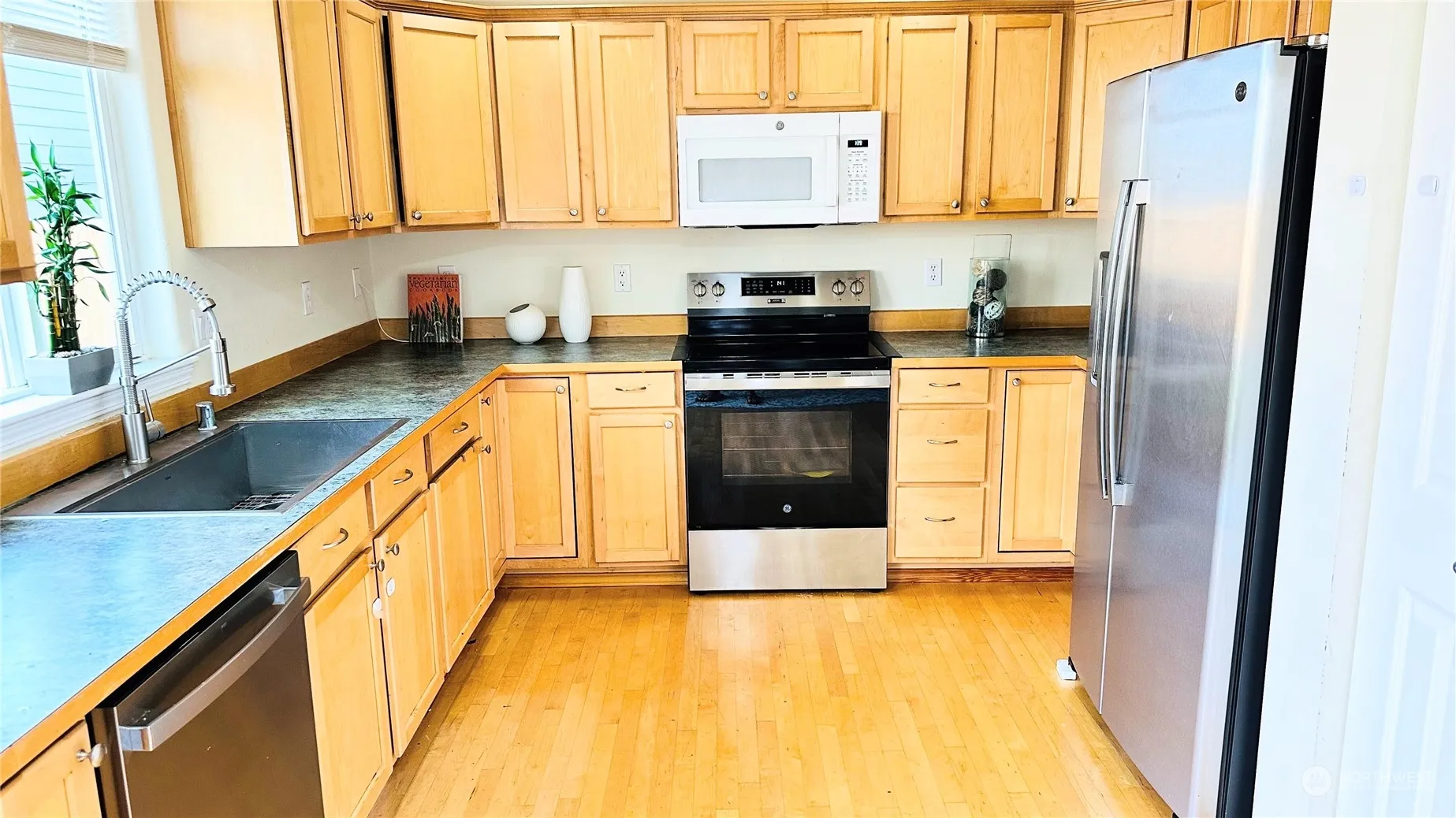 Bright, Spacious, and Full of Upgrades!Nestled in the desirable Meadows community, this naturally lit home boasts skylights, soaring vaulted ceilings, and a host of modern updates. The open floor plan is perfect for entertaining, featuring brand new stainless steel appliances, AC/furnace, smart switches, and new fence. The large kitchen, complete with a walk-in pantry, offers ample space for all your culinary adventures.Enjoy your morning tea on the cozy, covered front porch, or relax in the fully fenced private backyard, complete with a concrete patio perfect for hosting summer BBQs or outdoor gatherings. For garden enthusiasts, there’s space to nurture your green thumb! Great schools, easy access to I-5, I-405, HWY 9.